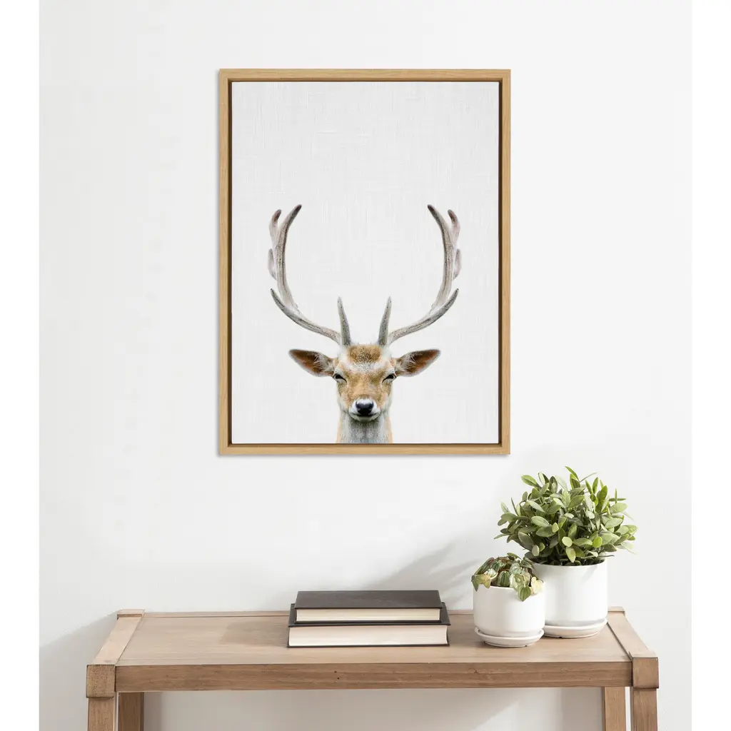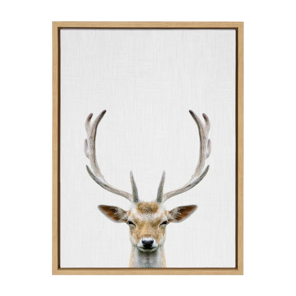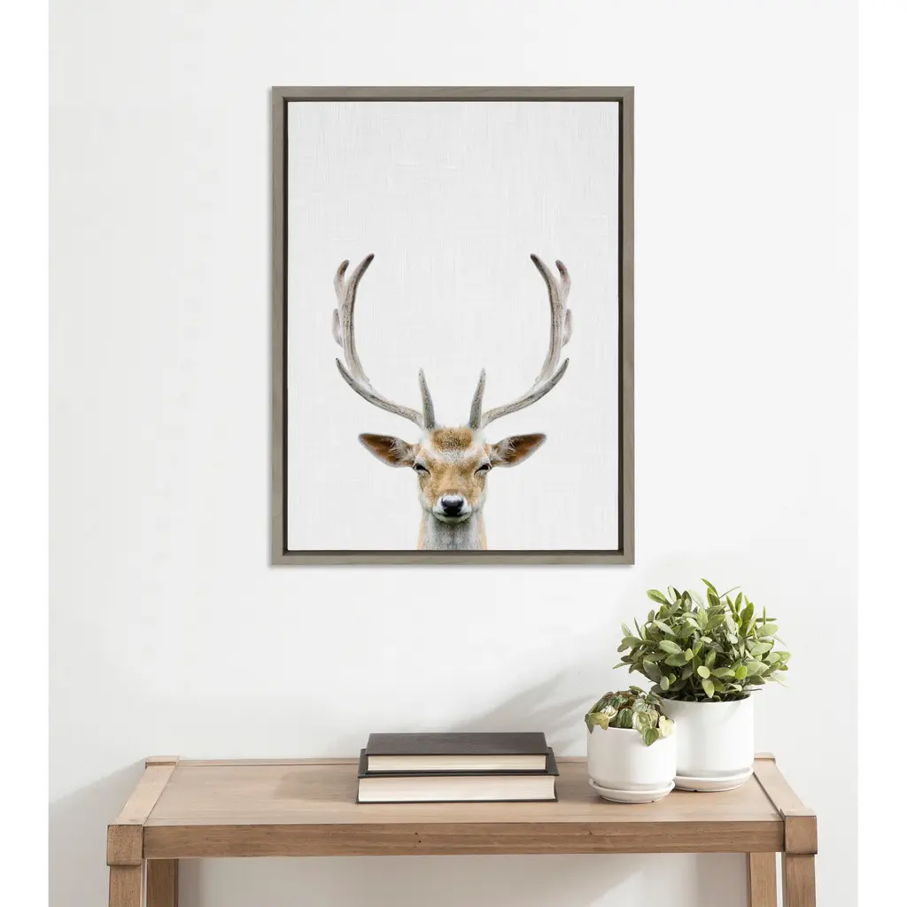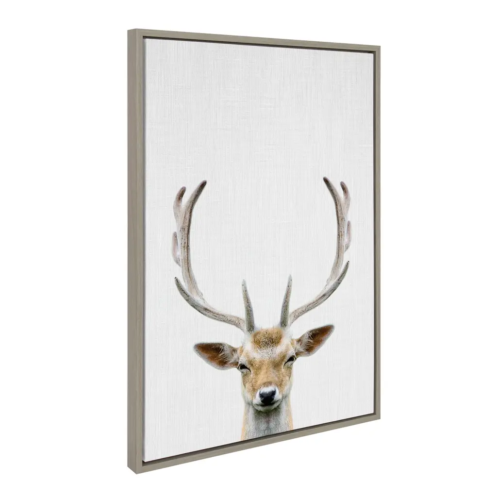 This framed canvas wall art by Simon Te of Tai Prints is a great way to introduce the charm of the forest to your space. Display your love of animals in your home with this powerful deer with antlers portrait. Framed in the USA in Waunakee, Wisconsin, this modern floating canvas art is sure to bring joy to your space. Our design team curates art that will fit perfectly in any room of your home. Showcase this art in your living room, bedroom, home office, kitchen, bathroom, nursery, or anywhere you want to bring a little beauty and charm to your walls. Specializing in home décor, we are continually bringing timeless works of art for the traditional decorator as well as trend-forward pieces for that eclectic art lover. Our high-quality framed canvas art also makes excellent gifts for birthdays, holidays, or housewarming parties. Printed on gallery-wrapped canvas and framed with a simple gallery frame this wall art is easy to display on the wall and will match with any décor style. The outer dimensions are 18 inches by 24 inches by 1.6 inches. Print Name: "Deer Color"