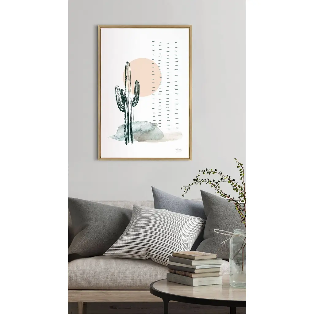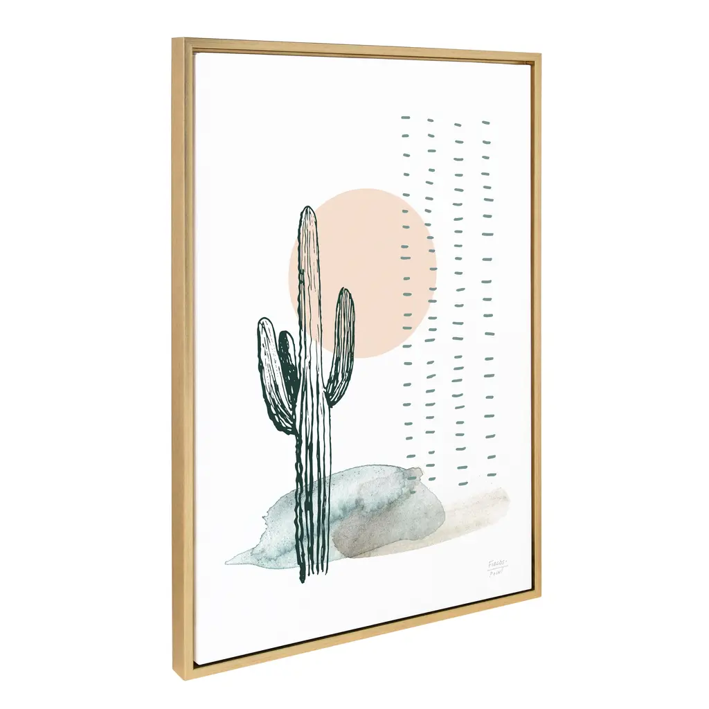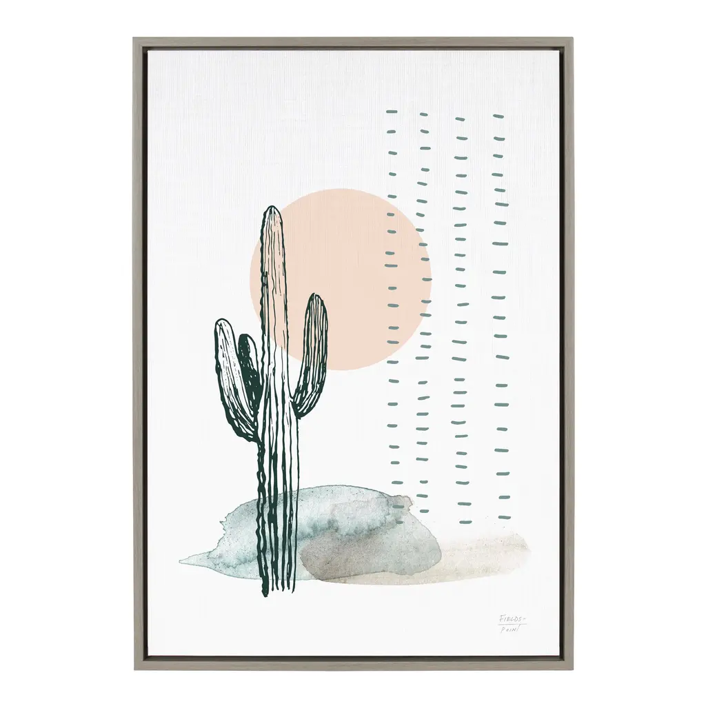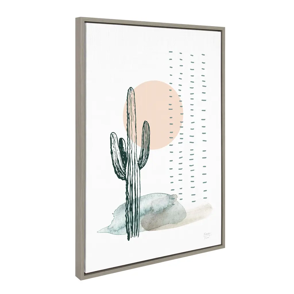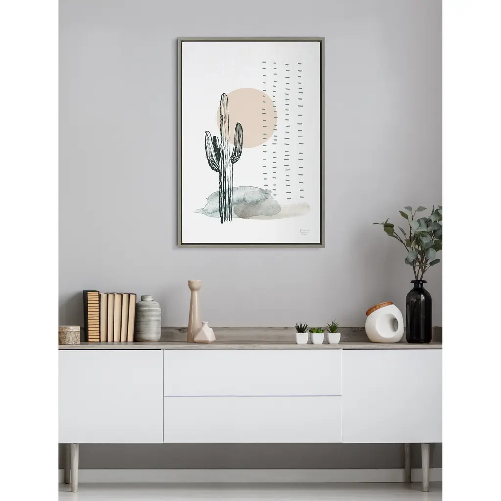 Kate And Laurel Sylvie Desert Cactus Framed Canvas By Statement Goods - 23x33 - Plastic - Grey