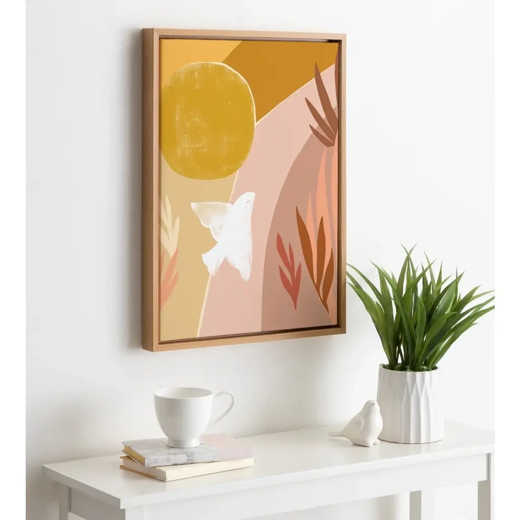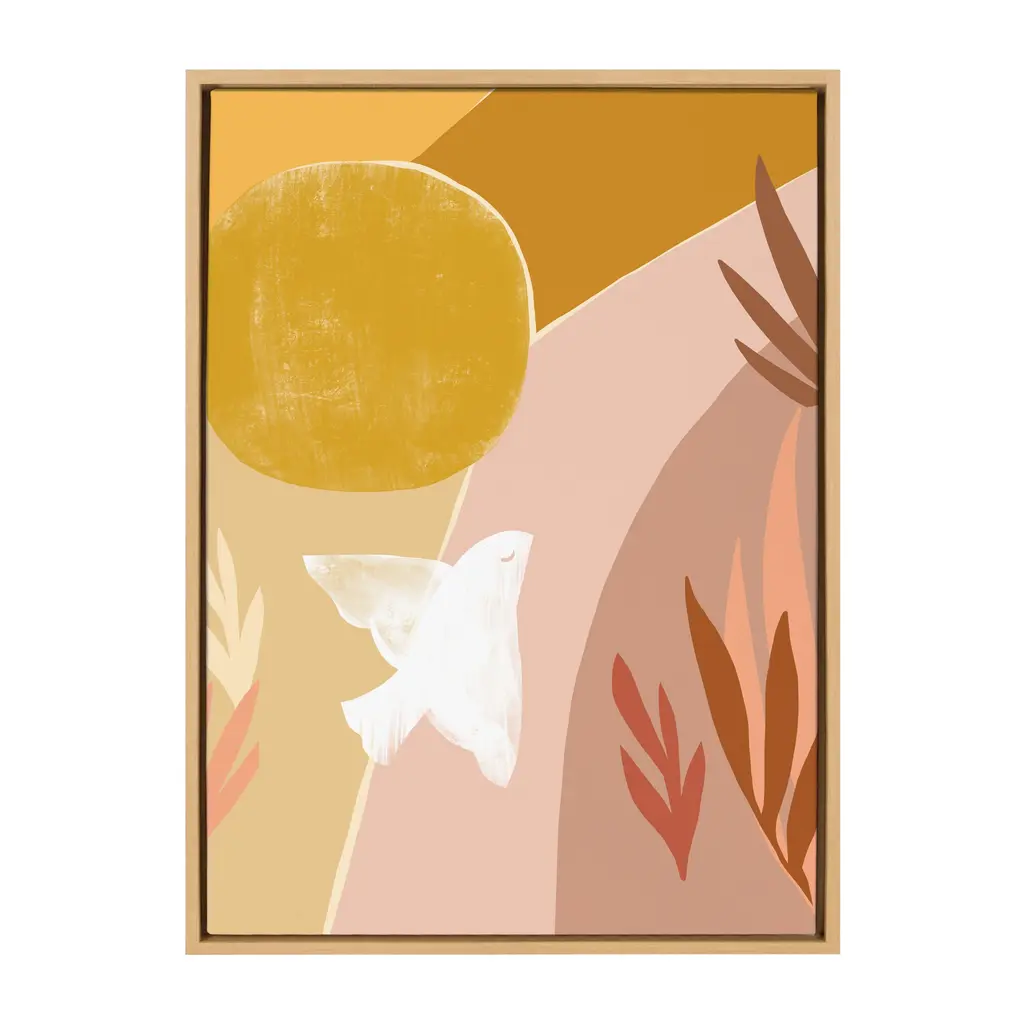 Imagine a warm piece of wall art decor for your home that brings a peaceful serenity into the living space. The gorgeous Sunrise Dove wall art accomplishes that and more, with the image of a dove flying upward to greet the rising morning sun. Place this framed canvas in any of your favorite spaces-it would look stunning in your living room, bedroom, dining room, or even your entryway. There's no framing or assembly required, either, and the metal sawtooth hangers allow for easy hanging in a matter of seconds. The display dimensions are 24 inches high by 18 inches across by 1.6 inches deep. Print name: "Sunrise Dove" by Kate Aurelia Holloway. About the Artist: Kate Aurelia Holloway is a Boston-based artist with a passion for the outdoors, nature, and the sea. Her artistic passion stretches across multiple mediums, including paint, block-printing, pen and ink, and digital techniques. When creating her art, Holloway hopes to inspire the same happiness and peace she discovers while exploring and traveling the world. Her studio is located by the Atlantic Ocean, where she collaborates with other fellow artists and adventurers.