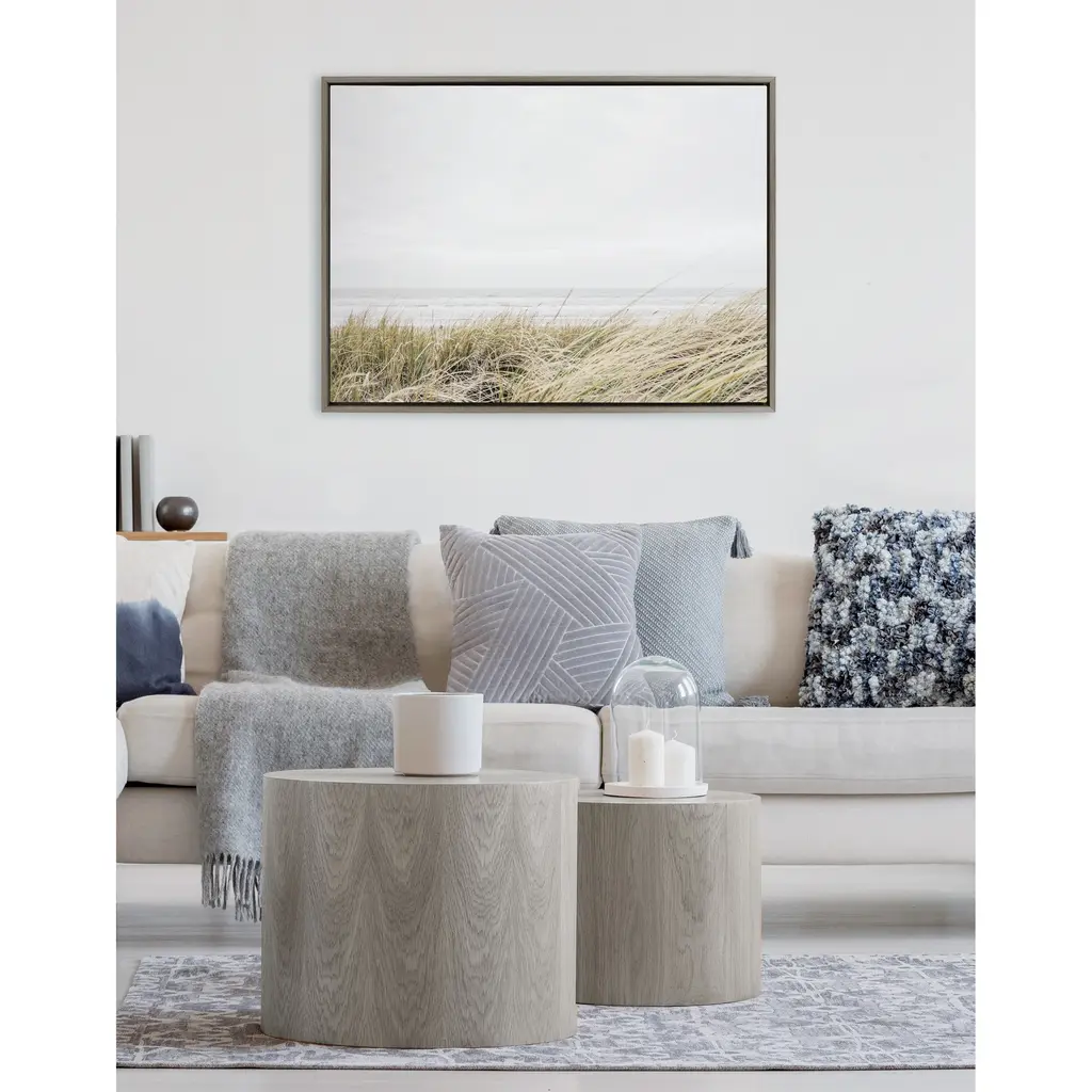 Imagine yourself in this beautiful coastal beach with this print by Amy Peterson. Framed in the USA in Waunakee, Wisconsin, this floating canvas art will be a pleasure to look at every day in your living room, bedroom, nursery, or any room in the home. Printed on gallery-wrapped canvas and framed with a lightweight polystyrene frame, this wall art has two hangers already attached to the MDF back for easy wall display. The outer dimensions are 33 inches tall by 23 inches wide by 1.63 inches deep. Print Name: "East Beach"
