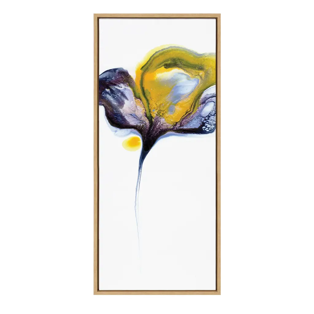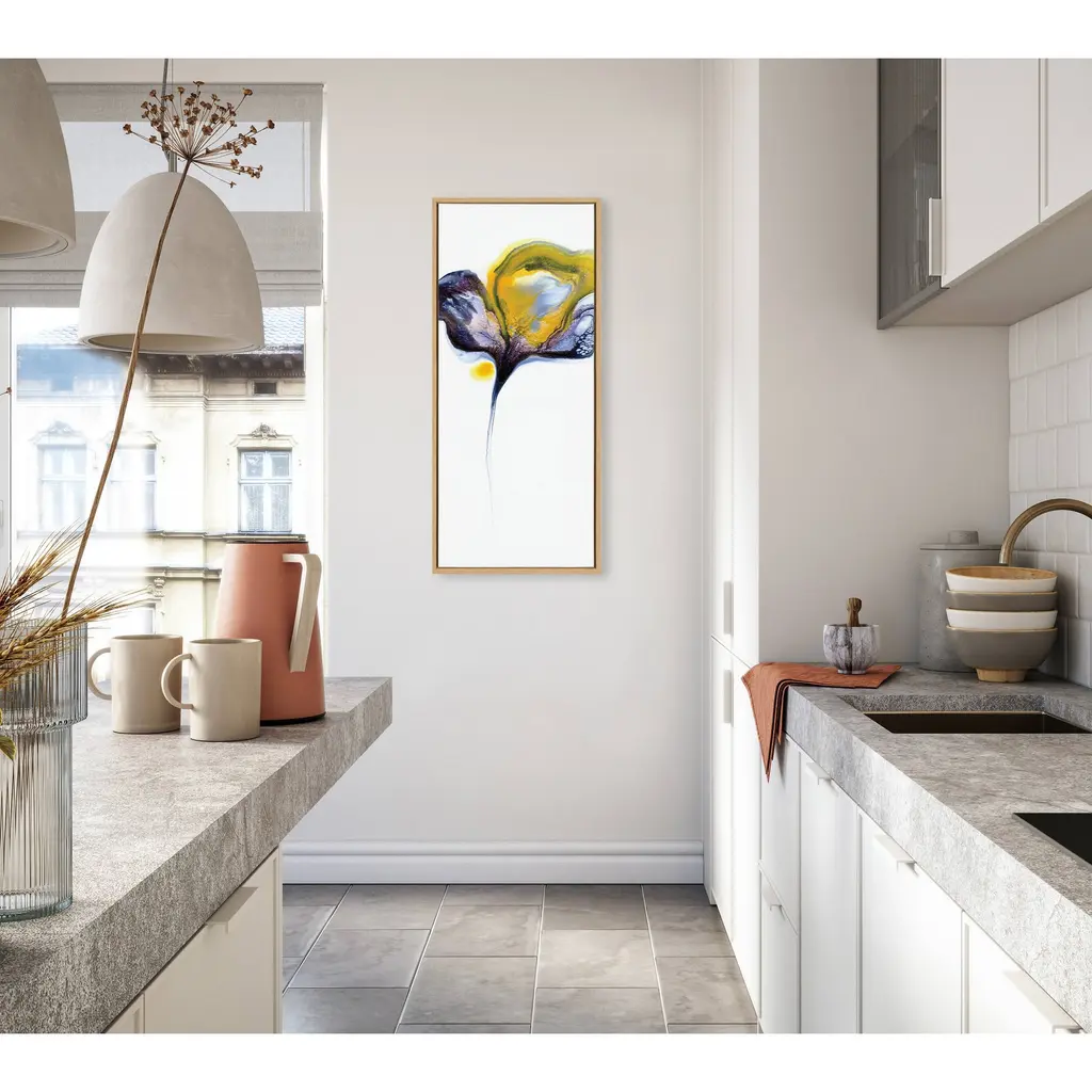 Brighten up your walls with this captivating framed canvas wall art featuring modern abstract flower art by Xizhou Xie. This art piece showcases a light background with vibrant floral motifs, adding a pop of color and contemporary style to any room. Framed in the USA in Waunakee, Wisconsin, this modern floating canvas art is sure to bring joy to your space. Our design team curates art that will fit perfectly in any room of your home. Showcase this art in your living room, bedroom, home office, kitchen, bathroom, nursery, or anywhere you want to bring a little beauty and charm to your walls. Specializing in home décor, we are continually bringing timeless works of art for the traditional decorator as well as trend-forward pieces for that eclectic art lover. Our high-quality framed canvas art also makes excellent gifts for birthdays, holidays, or housewarming parties. Printed on gallery-wrapped canvas and framed with a simple gallery frame this wall art is easy to display on the wall and will match with any décor style. The outer dimensions are 18 inches by 40 inches by 1.6 inches. Print Name: "Elegant Floral 5"