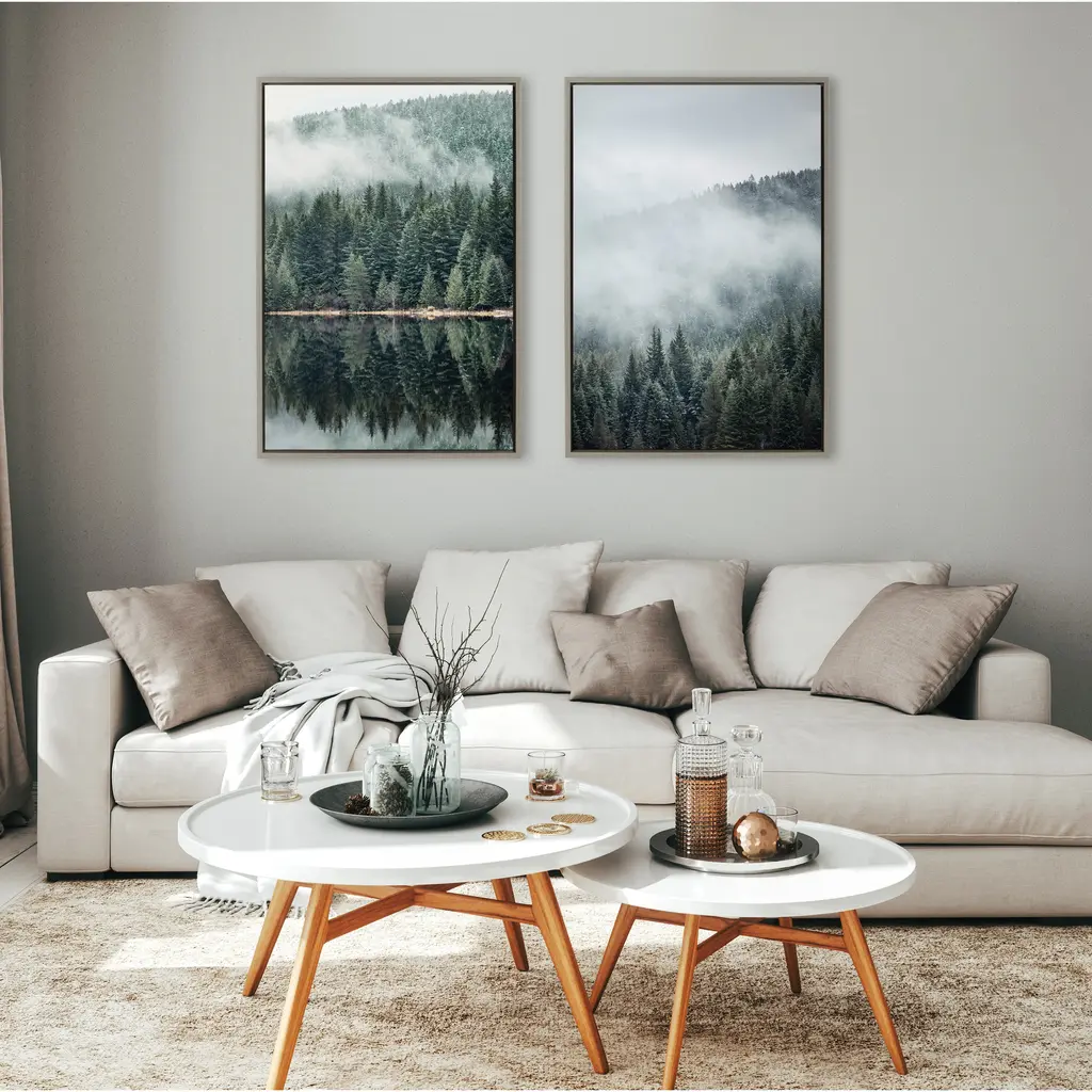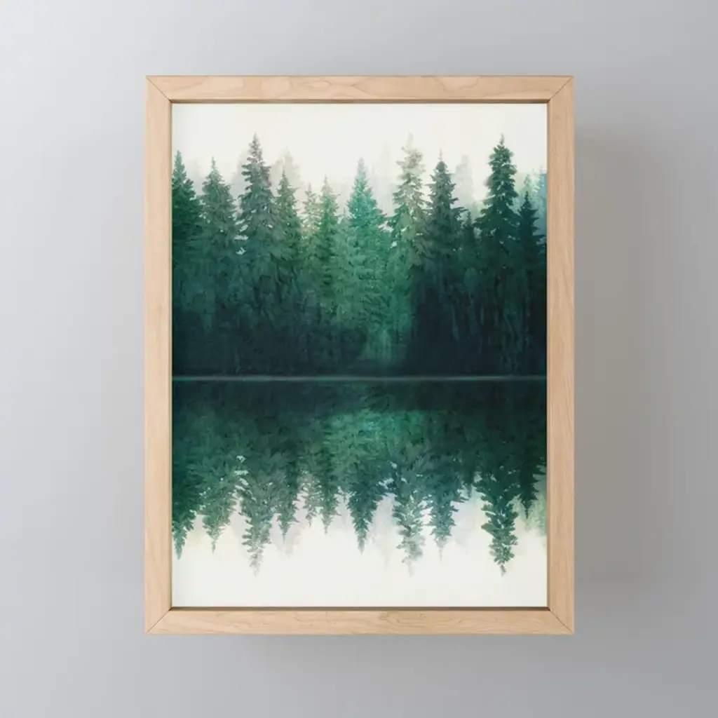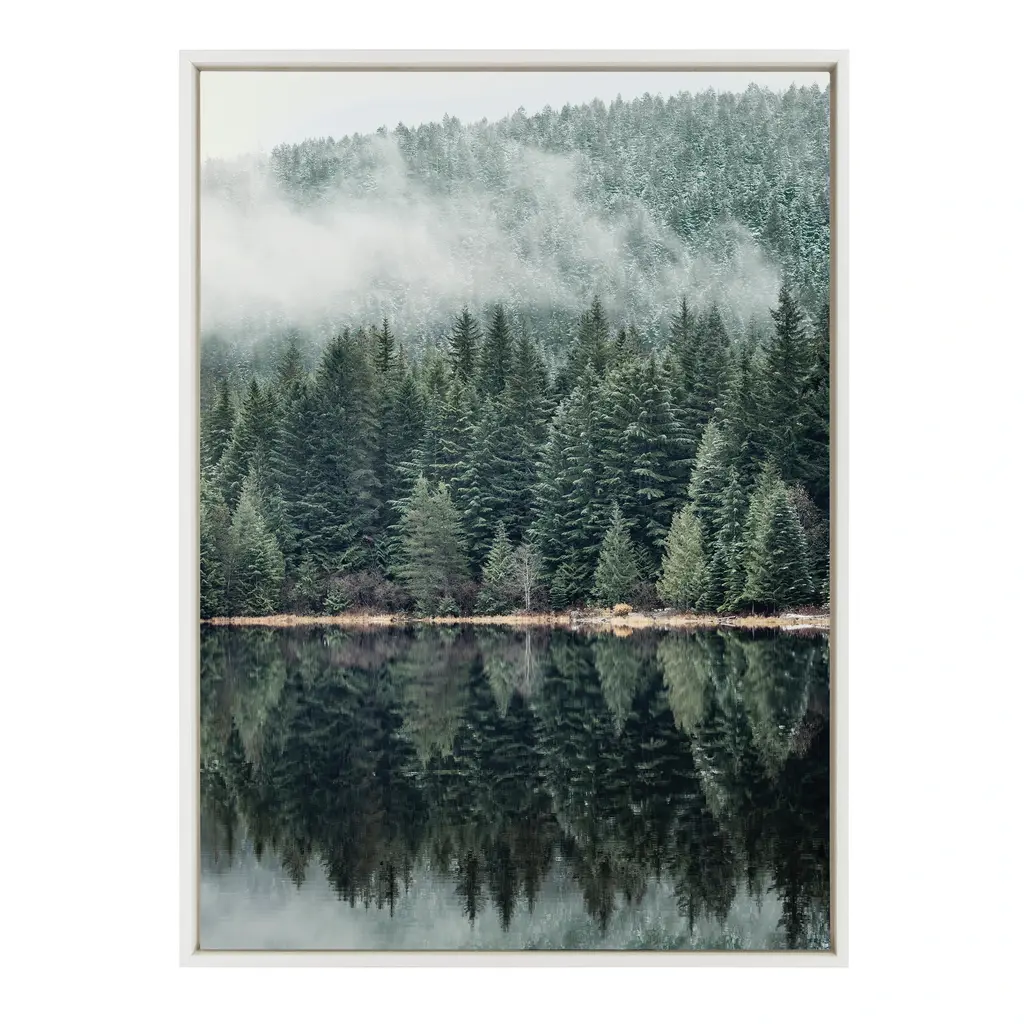 Visit the evergreen mountains with this picturesque piece by Emiko and Mark Franzen of F2Images. This lovely framed canvas can almost make you smell the pines from the comfort of your home. Framed in the USA in Waunakee, Wisconsin, this floating canvas art will be a pleasure to look at every day in your living room, bedroom, nursery, or any room in the home. This art print also makes an excellent gift for birthdays, holidays, or house-warming parties. Printed on gallery-wrapped canvas and framed with a lightweight polystyrene frame, this wall art is easy to display on the wall. The outer dimensions are 23 inches by 33 inches by 1.6 inches. Print Name: "Evergreen Reflections"