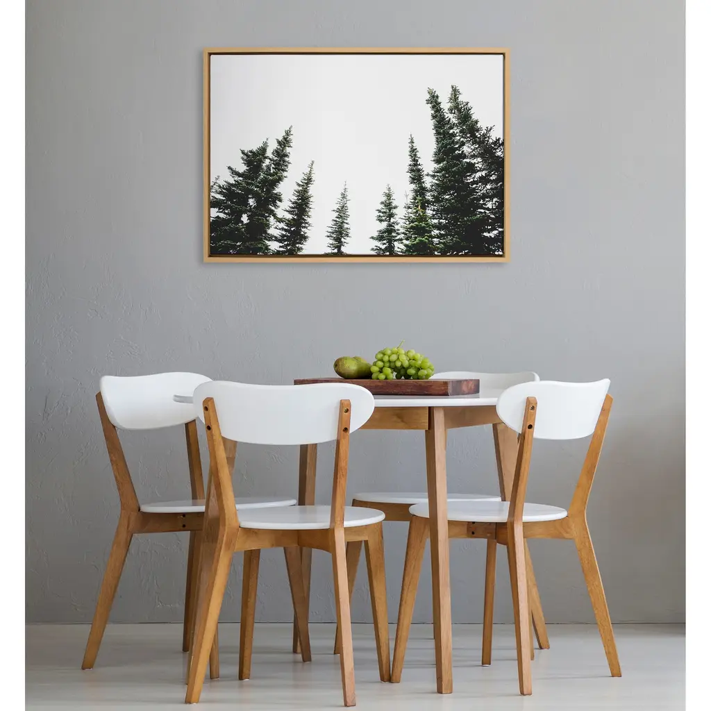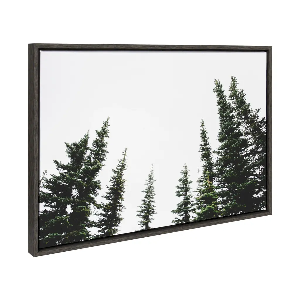 Get lost in the peaceful stillness of the forest with this beautiful art print. Framed in the USA in Waunakee, Wisconsin, this floating canvas art will be a pleasure to look at every day in your living room, bedroom, nursery, or any room in the home. This art print also makes an excellent gift for birthdays, holidays, or house-warming parties. Printed on gallery-wrapped canvas and framed with a lightweight polystyrene frame, this wall art is easy to display on the wall. The outer dimensions are 33 inches by 23 inches by 1.6 inches. Print Name: "Evergreens"
