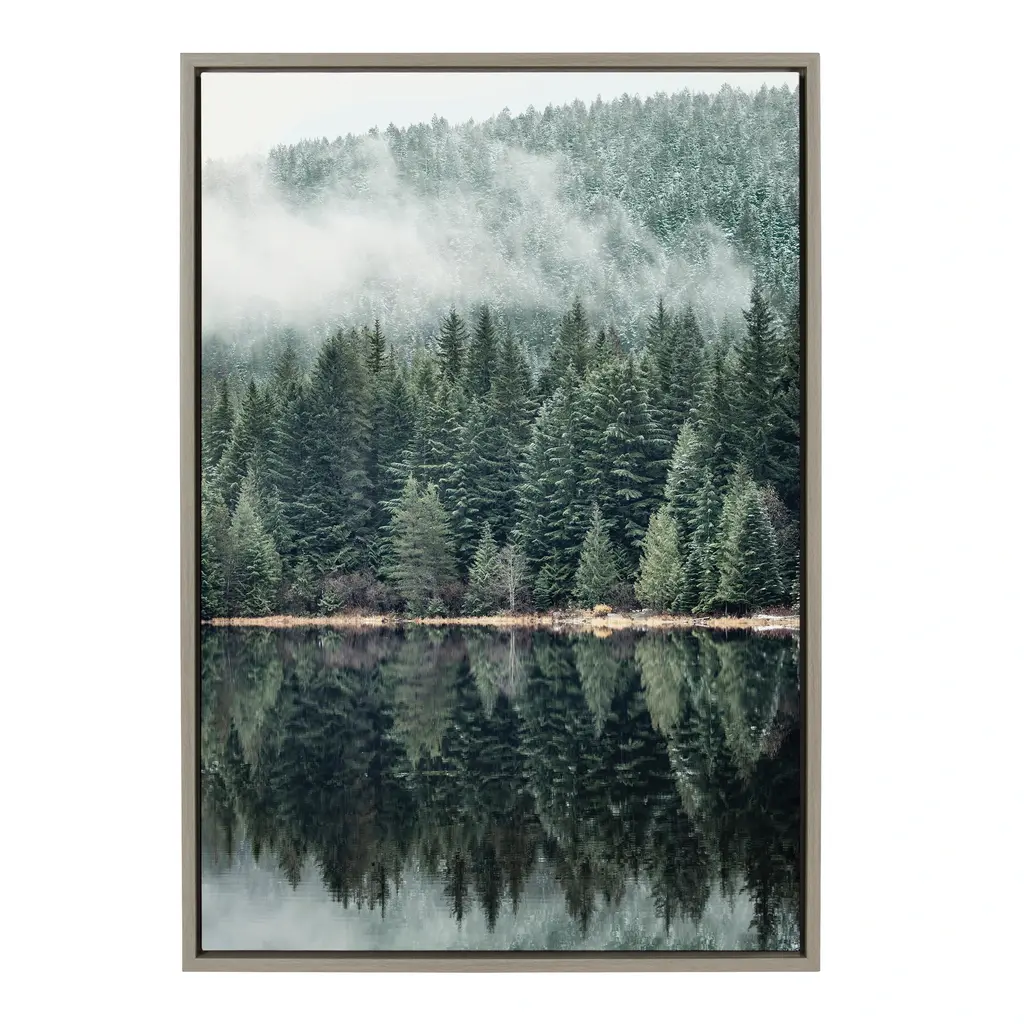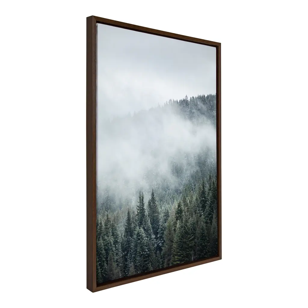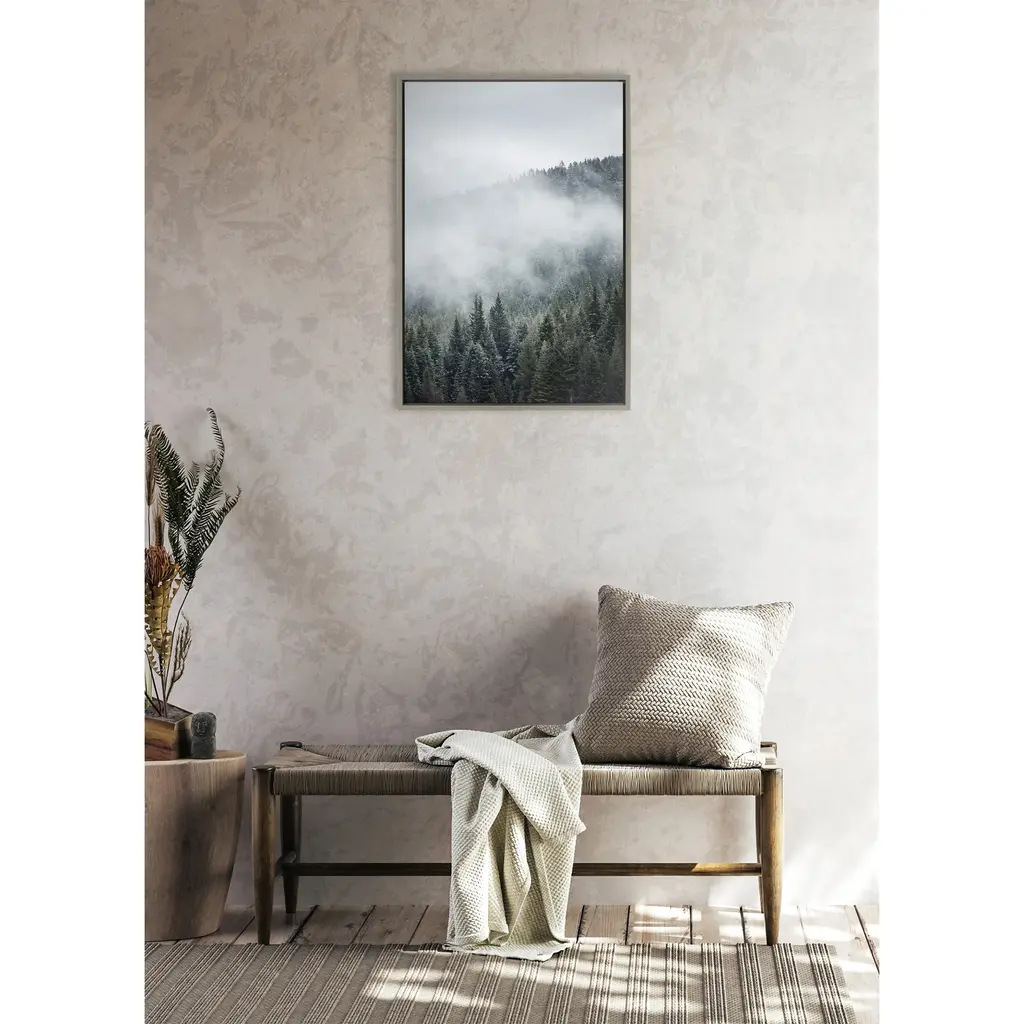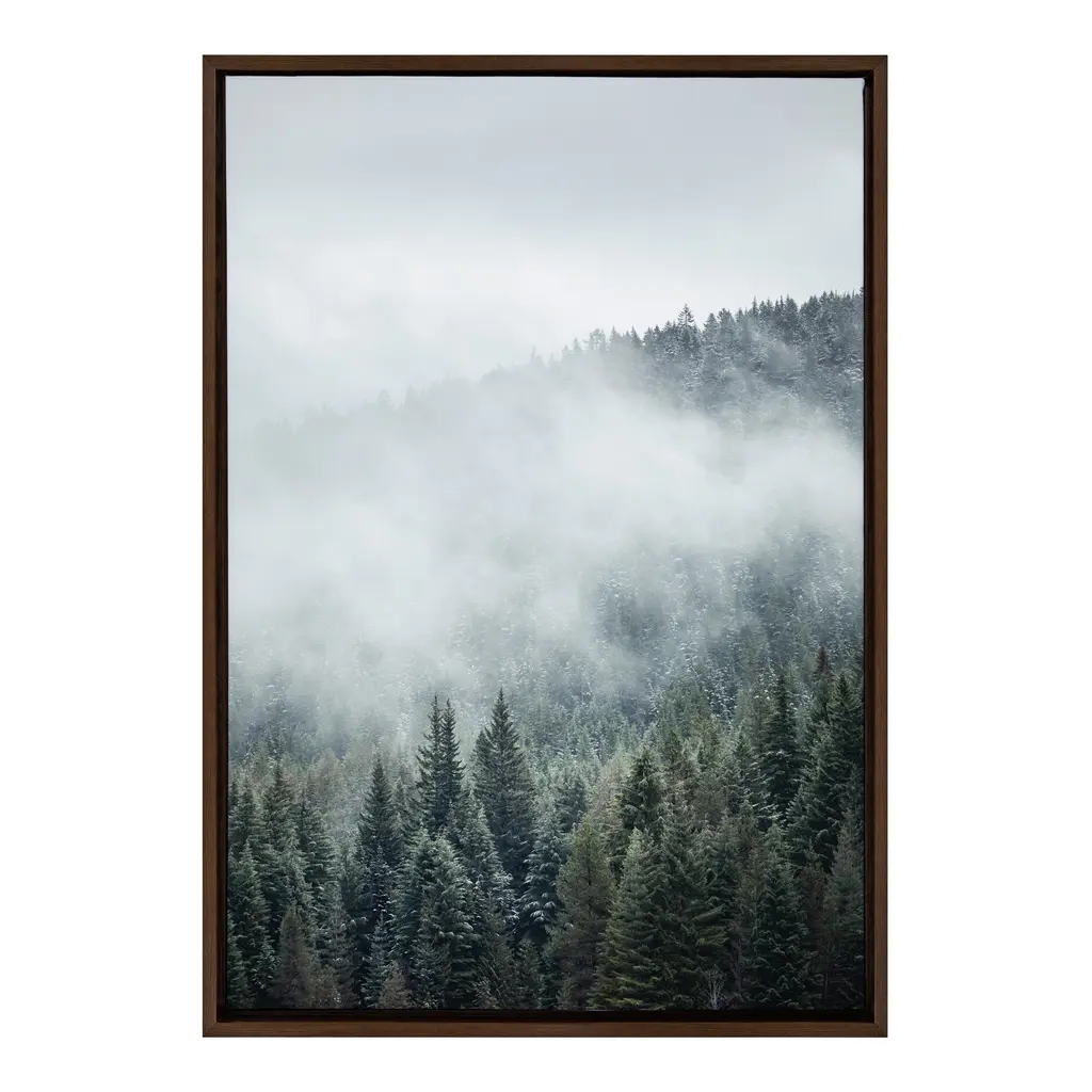 Kate And Laurel Sylvie Evergreens In Fog Framed Canvas By Emiko And Mark Franzen Of F2images - 23x33 - Brown