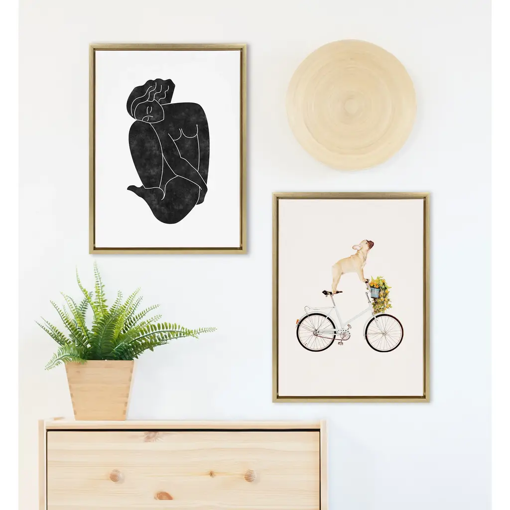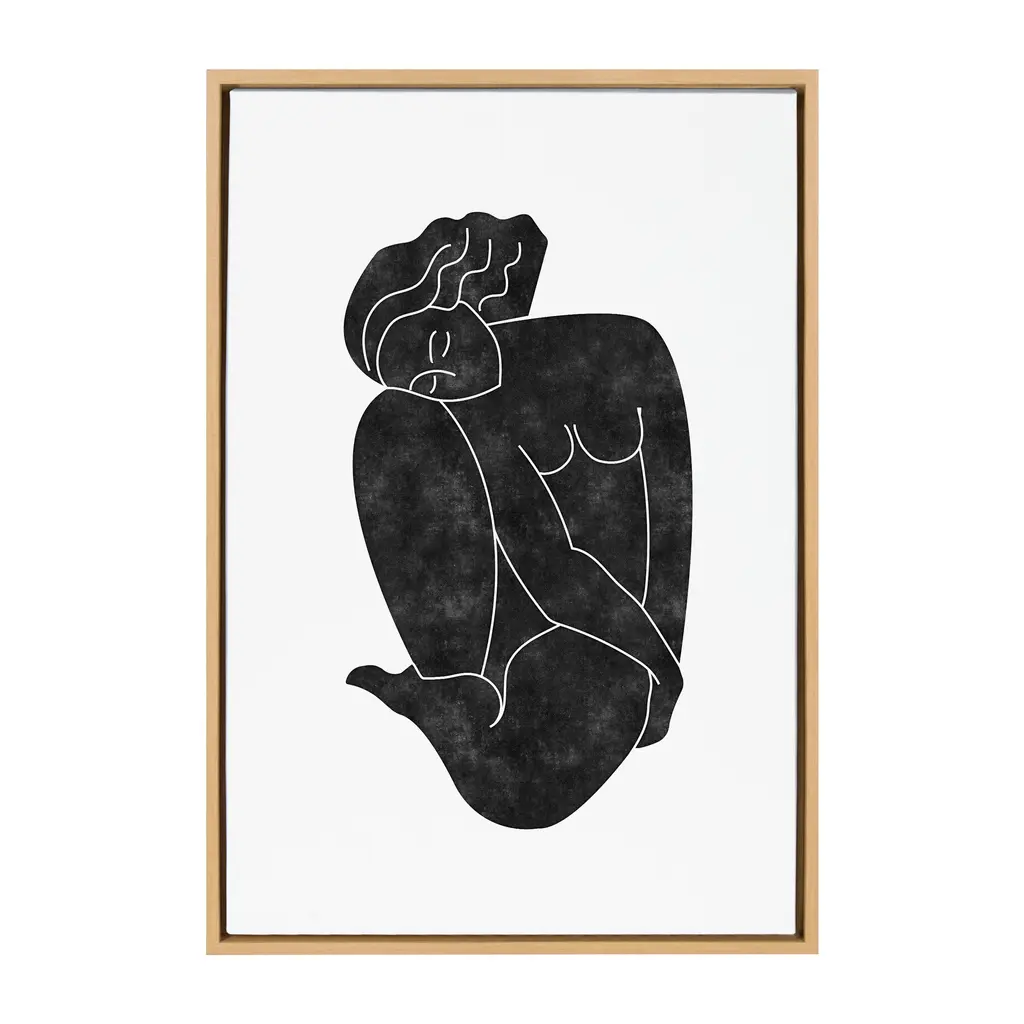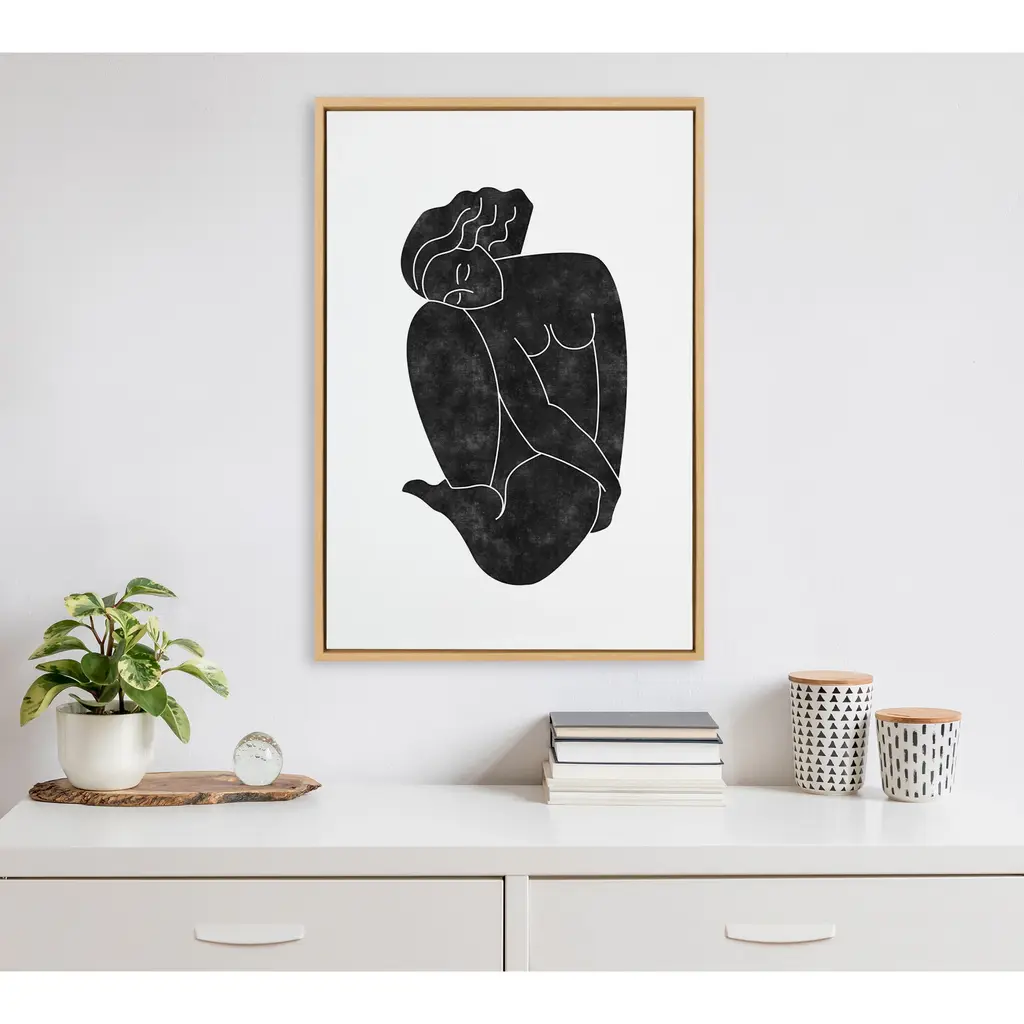 Give your space an addition of modern abstract design with this black figural artwork by Alexander Ginzburg. Its contemporary simplicity allows it to grace whatever space you're hoping to elevate. Framed in the USA in Waunakee, Wisconsin, this modern floating canvas art is sure to bring joy to your space. Our design team curates art that will fit perfectly in any room of your home. Showcase this art in your living room, bedroom, home office, kitchen, bathroom, nursery, or anywhere you want to bring a little beauty and charm to your walls. Specializing in home décor, we are continually bringing timeless works of art for the traditional decorator as well as trend-forward pieces for that eclectic art lover. Our high-quality framed canvas art also makes excellent gifts for birthdays, holidays, or housewarming parties. Printed on gallery-wrapped canvas and framed with a simple gallery frame this wall art is easy to display on the wall and will match with any décor style. The outer dimensions are 18 inches by 24 inches by 1.6 inches. Print Name: "Figurine Black"