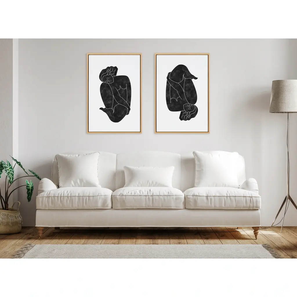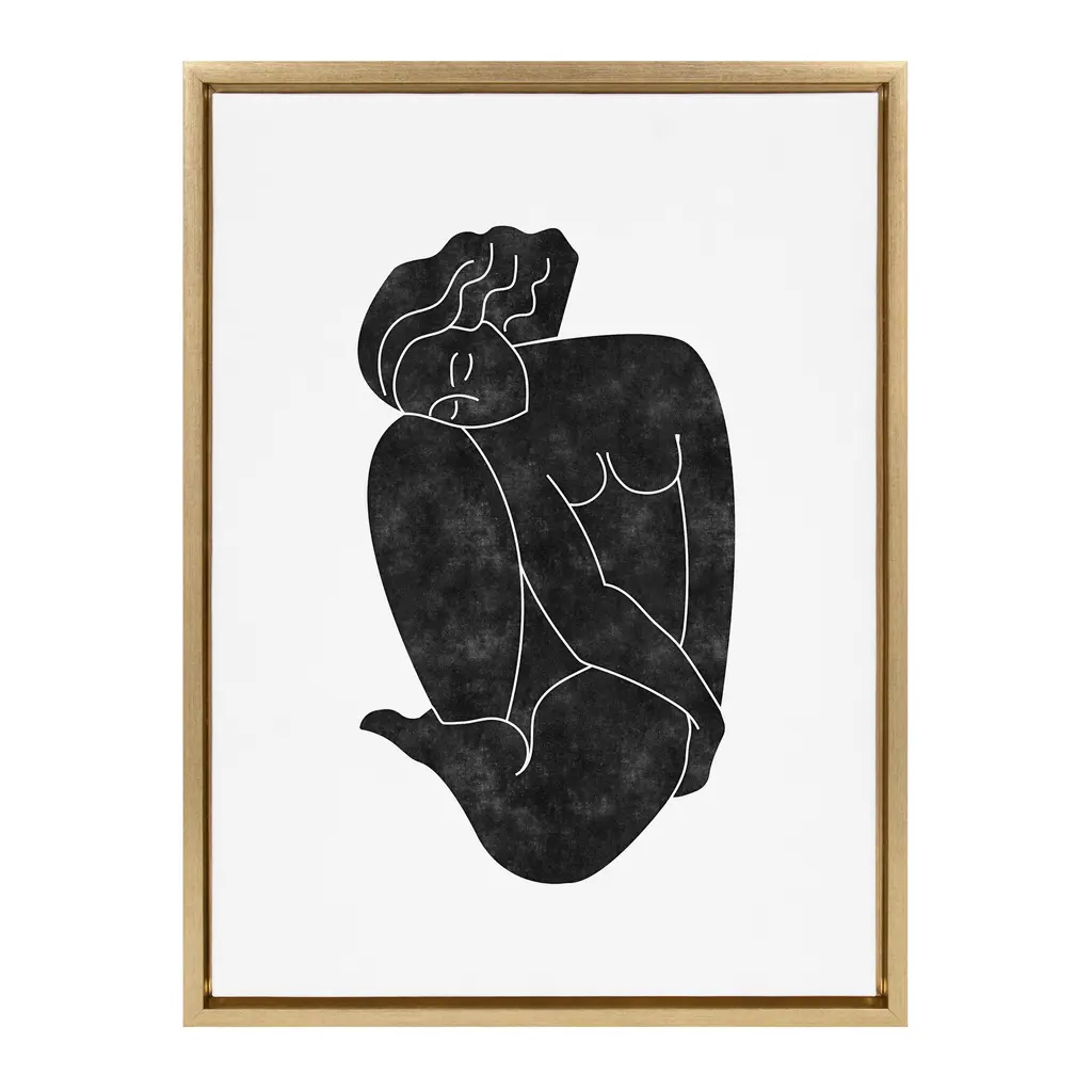 Give your space an addition of modern abstract design with this black figural artwork by Alexander Ginzburg. Its contemporary simplicity allows it to grace whatever space you're hoping to elevate. Framed in the USA in Waunakee, Wisconsin, this modern floating canvas art is sure to bring joy to your space. Our design team curates art that will fit perfectly in any room of your home. Showcase this art in your living room, bedroom, home office, kitchen, bathroom, nursery, or anywhere you want to bring a little beauty and charm to your walls. Specializing in home décor, we are continually bringing timeless works of art for the traditional decorator as well as trend-forward pieces for that eclectic art lover. Our high-quality framed canvas art also makes excellent gifts for birthdays, holidays, or housewarming parties. Printed on gallery-wrapped canvas and framed with a simple gallery frame this wall art is easy to display on the wall and will match with any décor style. The outer dimensions are 18 inches by 24 inches by 1.6 inches. Print Name: "Figurine Black"