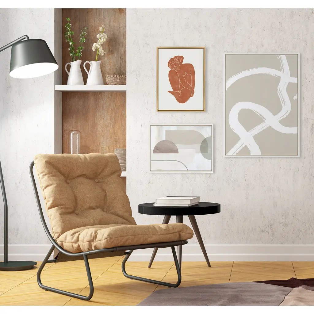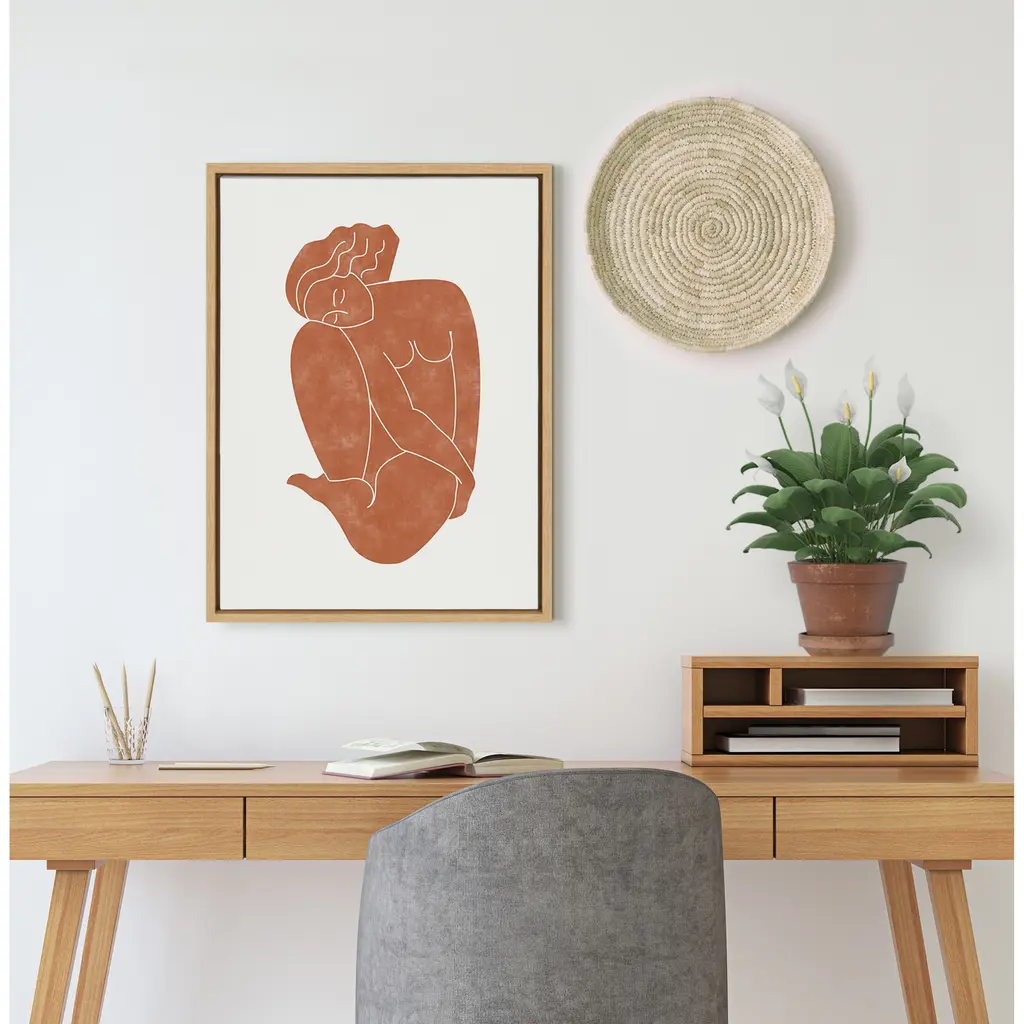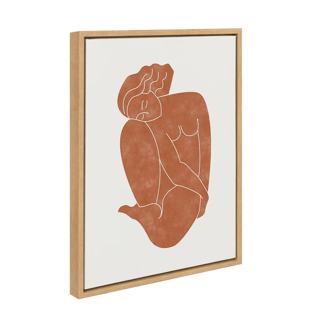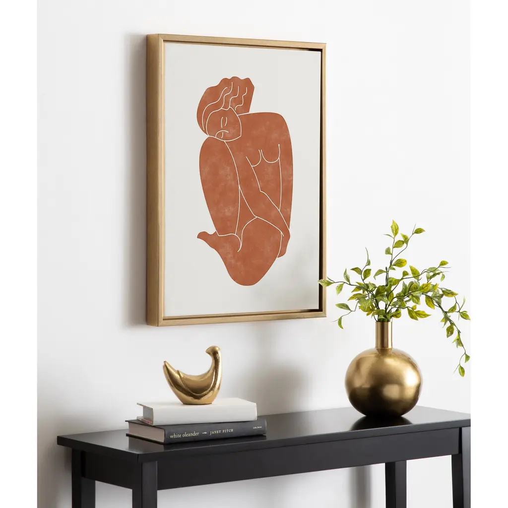 Bring art into your home that calms and centers you with this calming print representing the power of femininity. Displayed in a sleek modern frame, this will definitely provide you with a beautiful conversation and statement piece. Framed in the USA in Waunakee, Wisconsin, this floating canvas art will be a pleasure to look at every day in your living room, bedroom, nursery, or any room in the home. Printed on gallery-wrapped canvas and framed with a lightweight polystyrene frame, this wall art has two hangers already attached to the MDF back for easy wall display. The outer dimensions are 24 inches tall by 18 inches wide by 1.6 inches deep. Print Name: "Figurine". About the Artist: Born in Belarus, Alexander is a digital nomad, an artist, carpenter and surfer. Working together with Lisa Gur, a graphic designer and his feminine compass, they create abstracts and figurative art, exploring nuances of mood and color, momentary expression of beauty that reveals itself in everyday moments. They strive to create art that inspires and provokes feelings, the poetry of space, personal and authentic, a visual expression of what cannot be defined by structure and functionality.
