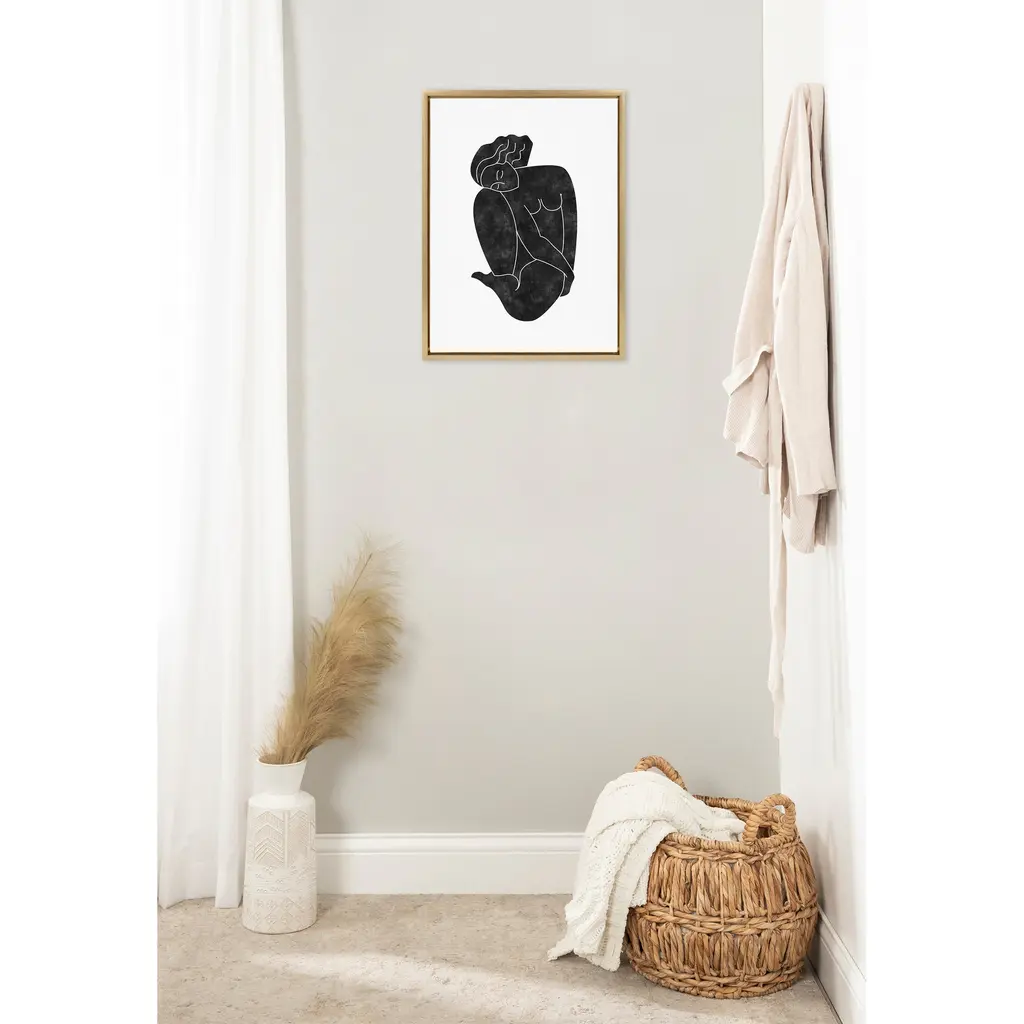 Give your space an addition of modern abstract design with this black figural artwork by Alexander Ginzburg. Its contemporary simplicity allows it to grace whatever space you're hoping to elevate. Framed in the USA in Waunakee, Wisconsin, this modern floating canvas art is sure to bring joy to your space. Our design team curates art that will fit perfectly in any room of your home. Showcase this art in your living room, bedroom, home office, kitchen, bathroom, nursery, or anywhere you want to bring a little beauty and charm to your walls. Specializing in home décor, we are continually bringing timeless works of art for the traditional decorator as well as trend-forward pieces for that eclectic art lover. Our high-quality framed canvas art also makes excellent gifts for birthdays, holidays, or housewarming parties. Printed on gallery-wrapped canvas and framed with a simple gallery frame this wall art is easy to display on the wall and will match with any décor style. The outer dimensions are 18 inches by 24 inches by 1.6 inches. Print Name: "Figurine Black"