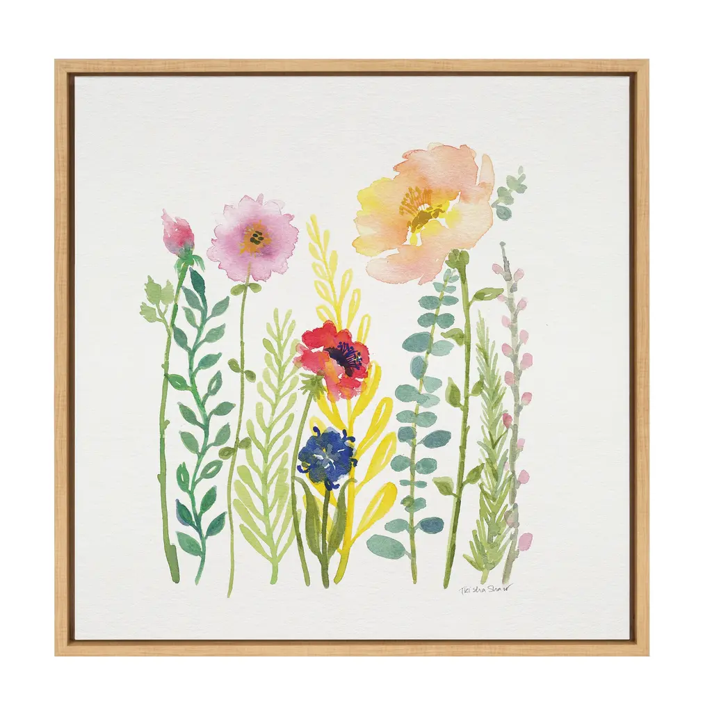 Showcase your love of gentle spring colors in this lovely flower print. Framed in the USA in Waunakee, Wisconsin, this floating canvas art will be a pleasure to look at every day in your living room, bedroom, office, or any room in the home. This art print also makes an excellent gift for birthdays, holidays, or house-warming parties. Printed on gallery-wrapped canvas and framed with a lightweight polystyrene frame, this wall art has two hangers already attached to the MDF back for easy wall display. The outer dimensions are 24 inches by 24 inches by 1.63 inches. Print Name: "Flowers and Ferns"
