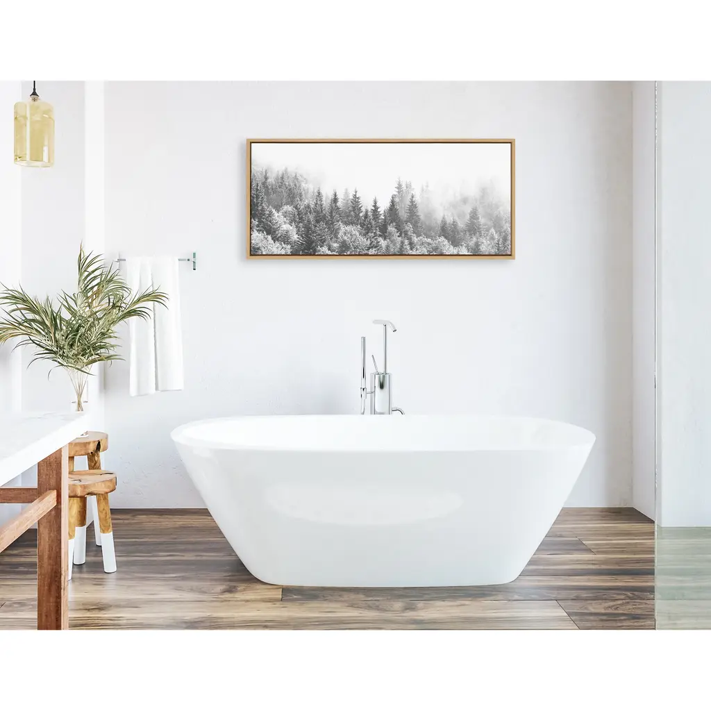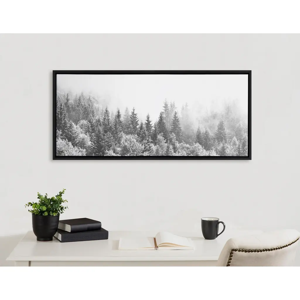 This is the only forest you want to get lost in (figuratively, of course). This nature-themed art print brings the mystifying beauty of the wilderness to your home. Framed in the USA in Waunakee, Wisconsin, this floating canvas art will be a pleasure to look at every day in your living room, bedroom, office, or any room in the home. This art print also makes an excellent gift for birthdays, holidays, or house-warming parties. Printed on gallery-wrapped canvas and framed with a lightweight polystyrene frame, this wall art has two hangers already attached to the MDF back for easy wall display. The outer dimensions are 38 inches by 28 inches by 1.6 inches. Print Name: "Forest On A Foggy Day BW"