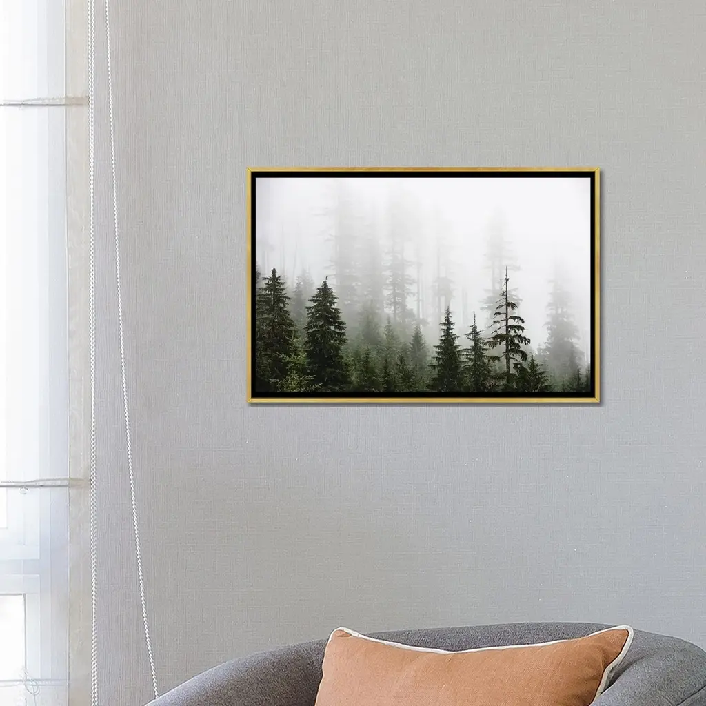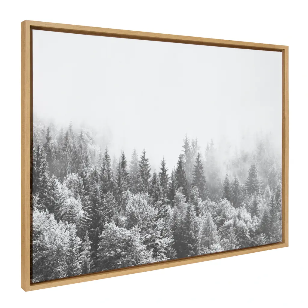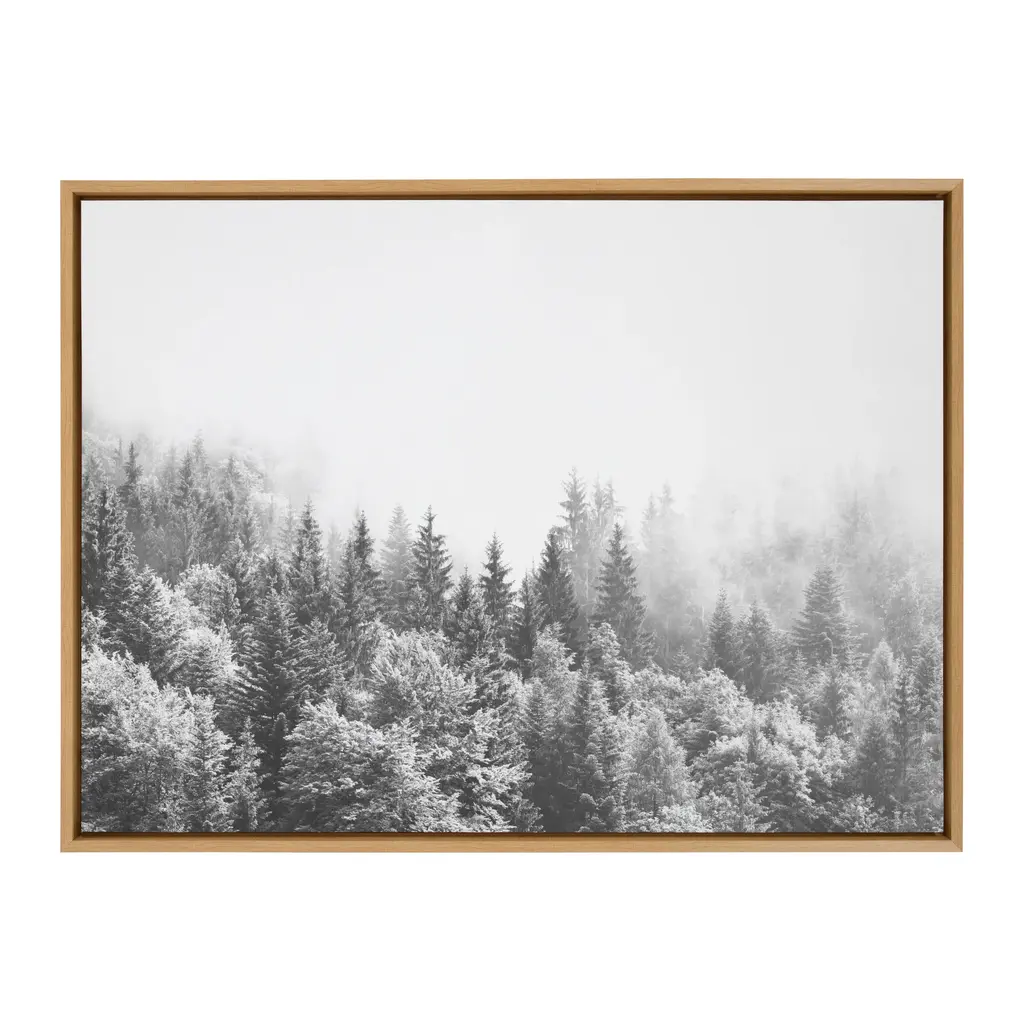 This is the only forest you want to get lost in (figuratively, of course). This nature-themed art print brings the mystifying beauty of the wilderness to your home. Framed in the USA in Waunakee, Wisconsin, this floating canvas art will be a pleasure to look at every day in your living room, bedroom, office, or any room in the home. This art print also makes an excellent gift for birthdays, holidays, or house-warming parties. Printed on gallery-wrapped canvas and framed with a lightweight polystyrene frame, this wall art has two hangers already attached to the MDF back for easy wall display. The outer dimensions are 38 inches by 28 inches by 1.6 inches. Print Name: "Forest On A Foggy Day BW"