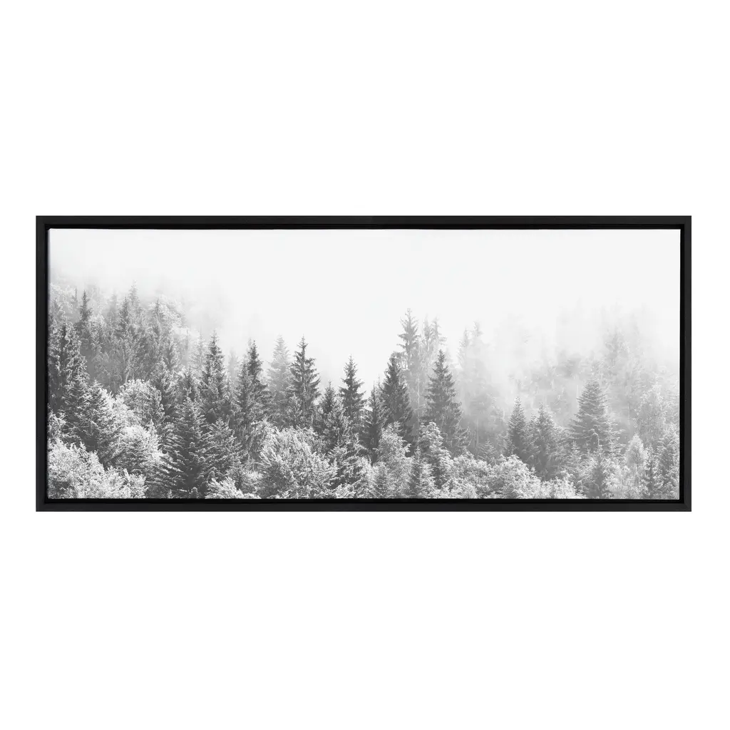 This is the only forest you want to get lost in (figuratively, of course). This nature-themed art print brings the mystifying beauty of the wilderness to your home. Framed in the USA in Waunakee, Wisconsin, this floating canvas art will be a pleasure to look at every day in your living room, bedroom, office, or any room in the home. This art print also makes an excellent gift for birthdays, holidays, or house-warming parties. Printed on gallery-wrapped canvas and framed with a lightweight polystyrene frame, this wall art has two hangers already attached to the MDF back for easy wall display. The outer dimensions are 38 inches by 28 inches by 1.6 inches. Print Name: "Forest On A Foggy Day BW"