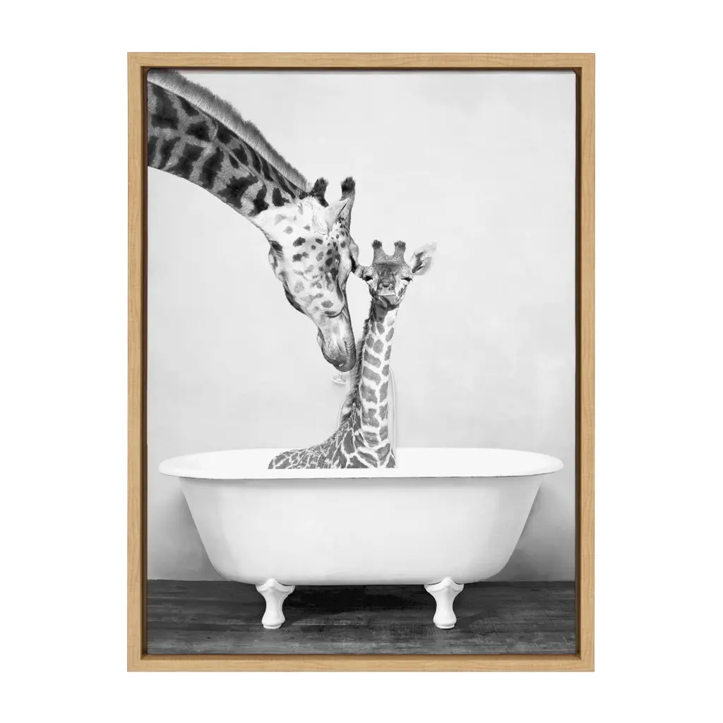 Kate And Laurel Sylvie Giraffe In Tub Framed Canvas By Amy Peterson - 18x24 - Plastic - Gold