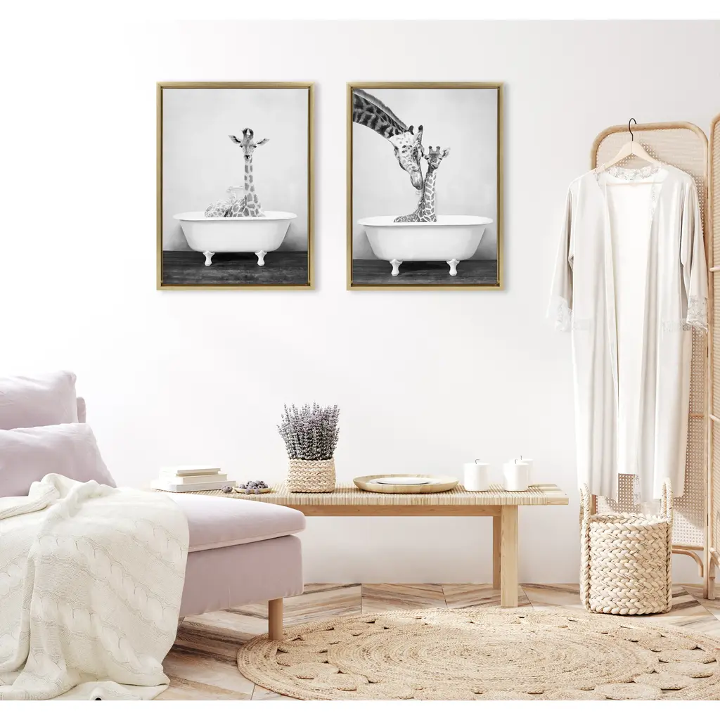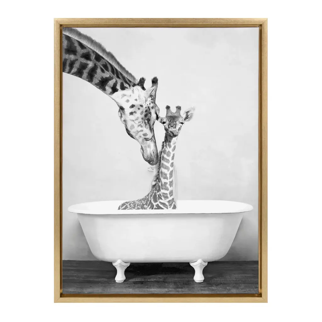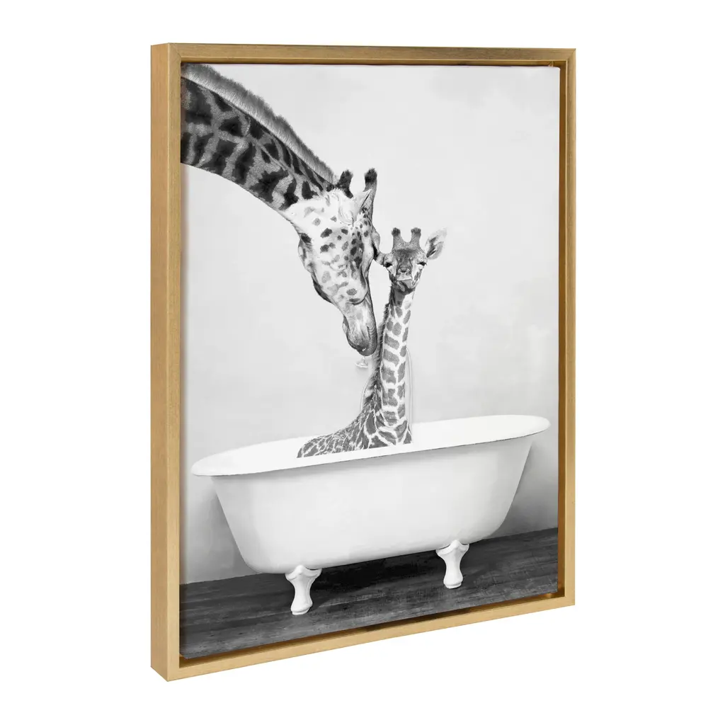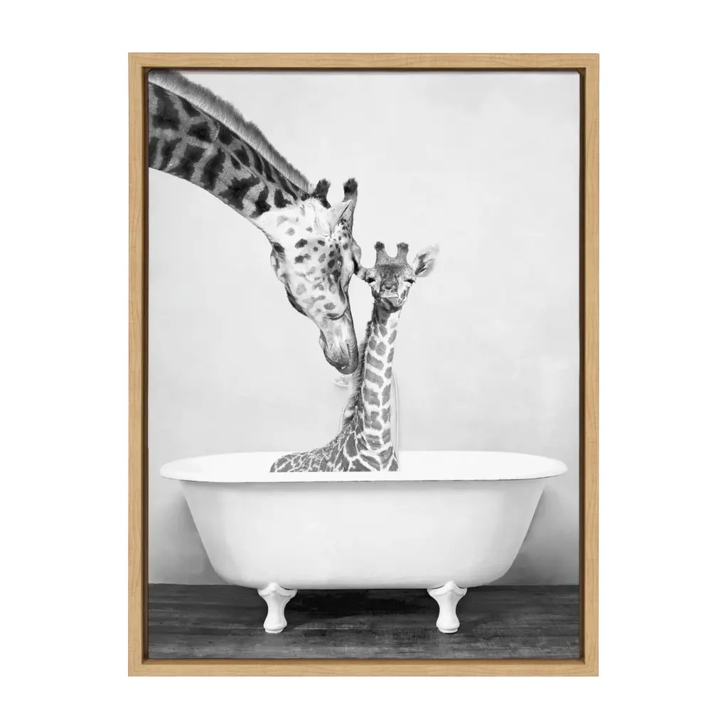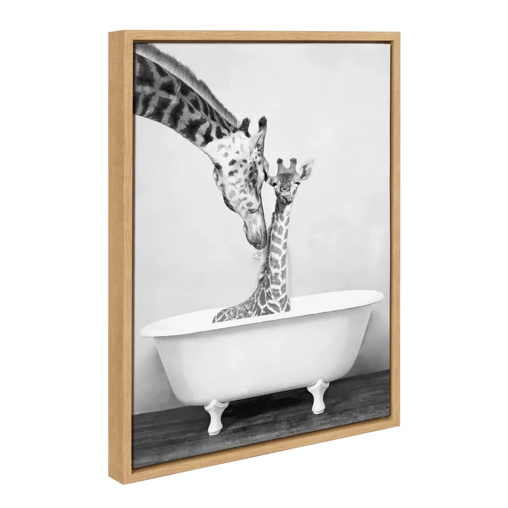 Kate And Laurel Sylvie Giraffe In Tub Framed Canvas By Amy Peterson - 18x24 - Plastic - Natural