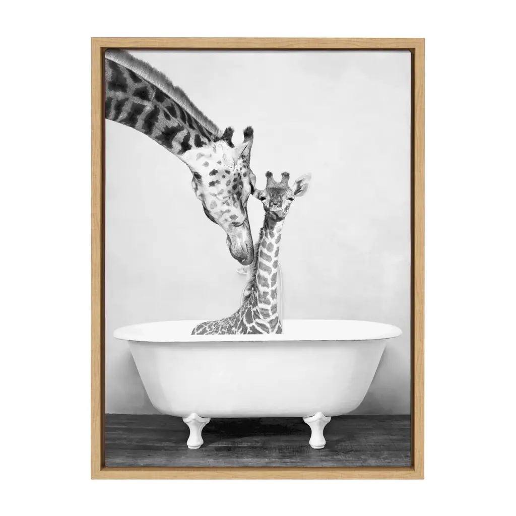 Kate And Laurel Sylvie Giraffe In Tub Framed Canvas By Amy Peterson - 23x33 - Plastic - White
