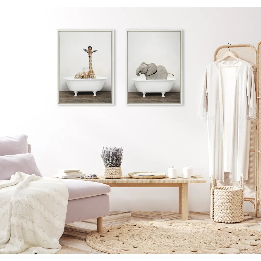 Kate And Laurel Sylvie Giraffe2 In Tub Framed Canvas By Amy Peterson - 18x24 - Grey
