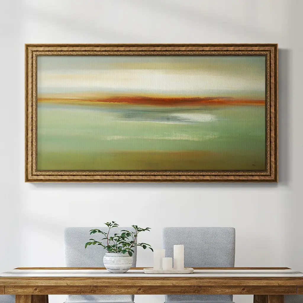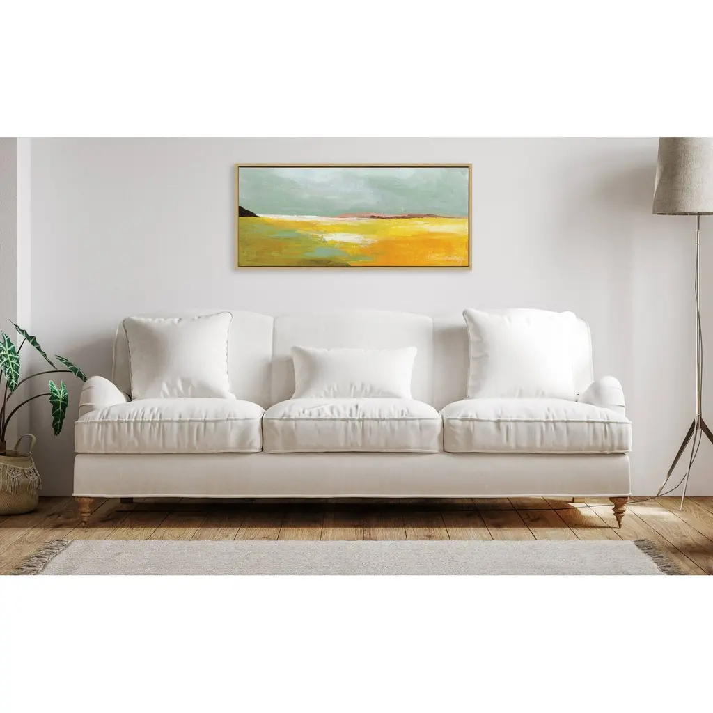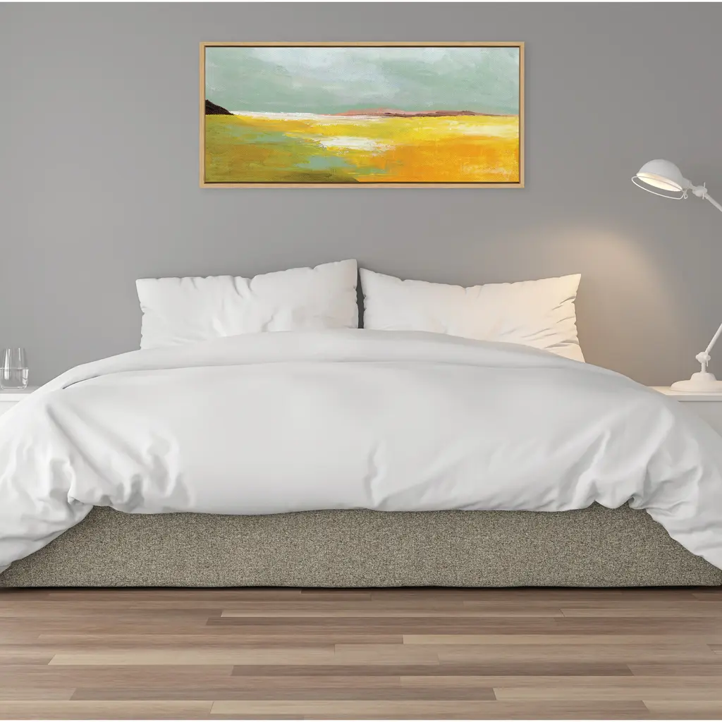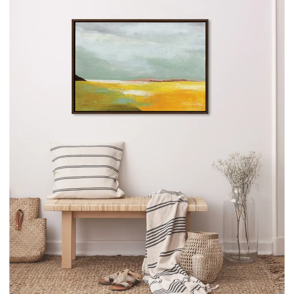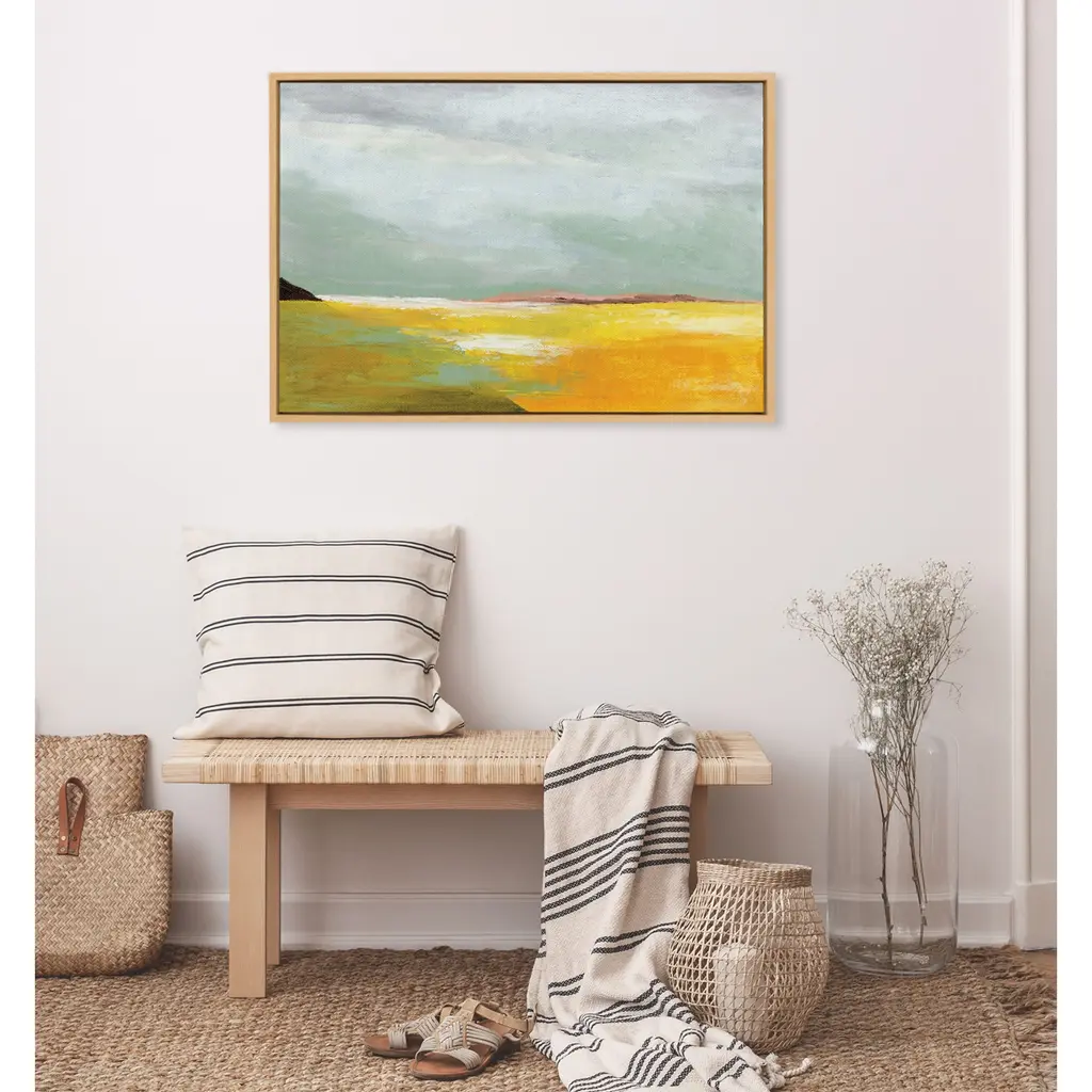 Craft a thoughtful, nature-filled gallery wall display with this gorgeous art piece from Nikita Jariwala. This artwork perfectly intermingles vibrant and pastel shades to create a stunning landscape. Framed in the USA in Waunakee, Wisconsin, this modern floating canvas art is sure to bring joy to your space. Our design team curates art that will fit perfectly in any room of your home. Showcase this art in your living room, bedroom, home office, kitchen, bathroom, nursery, or anywhere you want to bring a little beauty and charm to your walls. Specializing in home décor, we are continually bringing timeless works of art for the traditional decorator as well as trend-forward pieces for that eclectic art lover. Our high-quality framed canvas art also makes excellent gifts for birthdays, holidays, or housewarming parties. Printed on gallery-wrapped canvas and framed with a simple gallery frame this wall art is easy to display on the wall and will match with any décor style. The outer dimensions are 23 inches by 33 inches by 1.6 inches. Print Name: "Golden Root Lake"