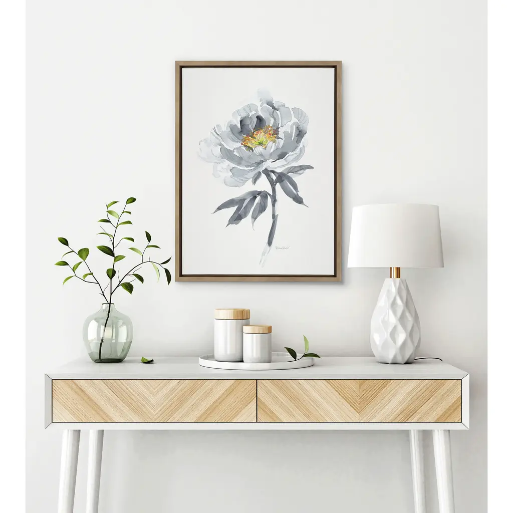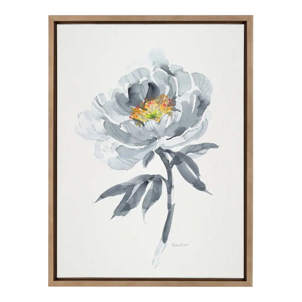 For every bit of gray, there's a little spot of sun and color. Embrace that mindset when you hang this beautiful floral art in your home! Framed in the USA in Waunakee, Wisconsin, this floating canvas art will be a pleasure to look at every day in your living room, bedroom, nursery, or any room in the home. This art print also makes an excellent gift for birthdays, holidays, or house-warming parties. Printed on gallery-wrapped canvas and framed with a lightweight polystyrene frame, this wall art has two hangers already attached to the MDF back for easy wall display. The outer dimensions are 24 inches by 18 inches by 1.63 inches. Print Name: "Gray Bloom"