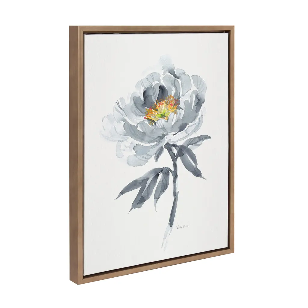 Kate And Laurel Sylvie Gray Bloom Framed Canvas By Patricia Shaw - 18x24 - Plastic - Gold