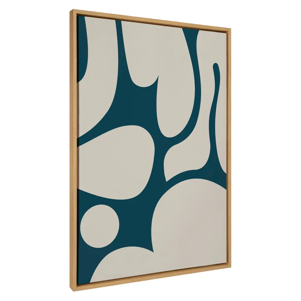 Kate And Laurel Sylvie Groovy Happy Abstract Dark Green Teal And Tan Framed Canvas By The Creative Bunch Studio - 28x38 - Natural