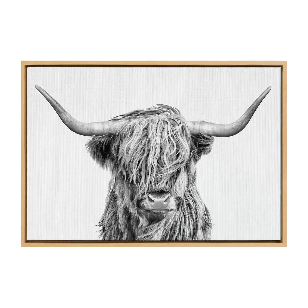 Kate And Laurel Sylvie Highland Cow 2 Framed Canvas By Simon Te Of Tai Prints - 23x33 - Natural