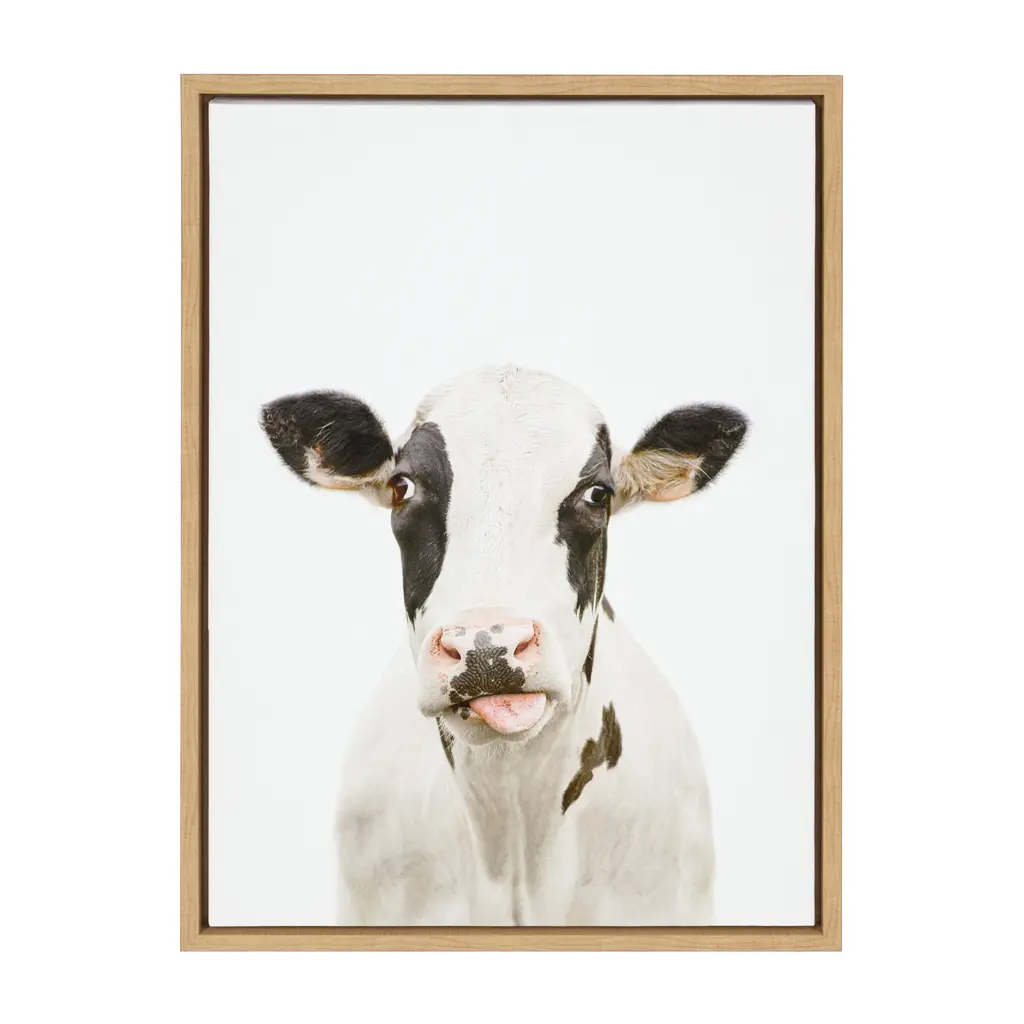 Provide your space with some whimsical appeal with this farm cow portrait. This lovely, light piece by Amy Peterson Art Studio is perfect for any animal lover. Framed in the USA in Waunakee, Wisconsin, this floating canvas art will be a pleasure to look at every day in your living room, bedroom, nursery, or any room in the home. This art print also makes an excellent gift for birthdays, holidays, or house-warming parties. Printed on gallery-wrapped canvas and framed with a lightweight polystyrene frame, this wall art is easy to display on the wall. The outer dimensions are 18 inches by 24 inches by 1.6 inches. Print Name: "Holstein Cow Portrait"