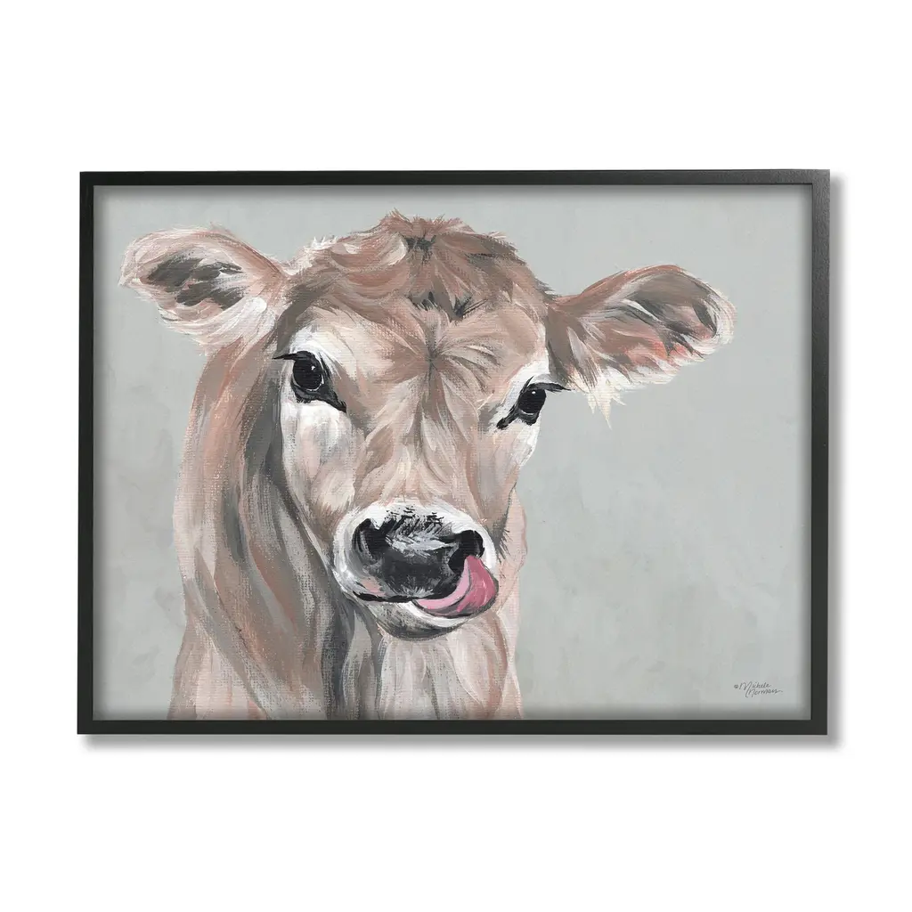 Kate And Laurel Sylvie Holstein Cow Portrait Framed Canvas By Amy Peterson Art Studio - 18x24 - Grey