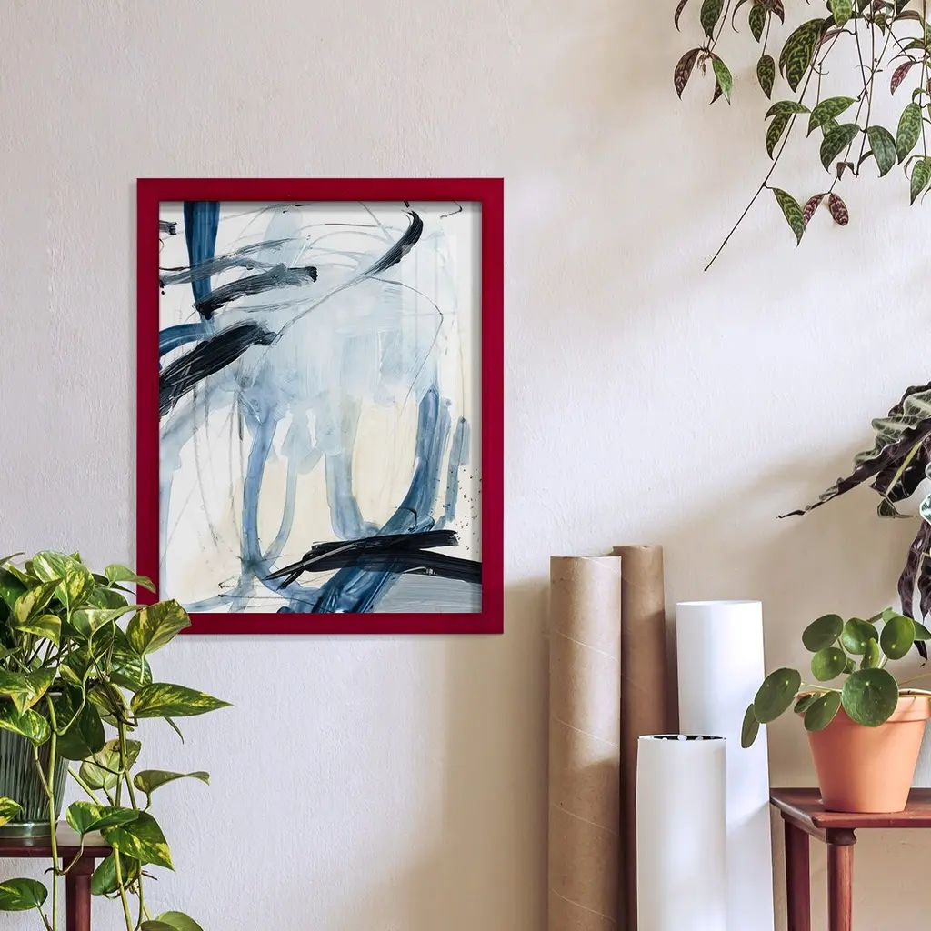 Incorporate some deep blue hues into your room design with this framed canvas artwork by Amy Peterson. The two attached hangers provide simple installation, and a gold frame makes the blue shades stand out. The abstract design is stylistically flexible and works well in both residential and office environments.