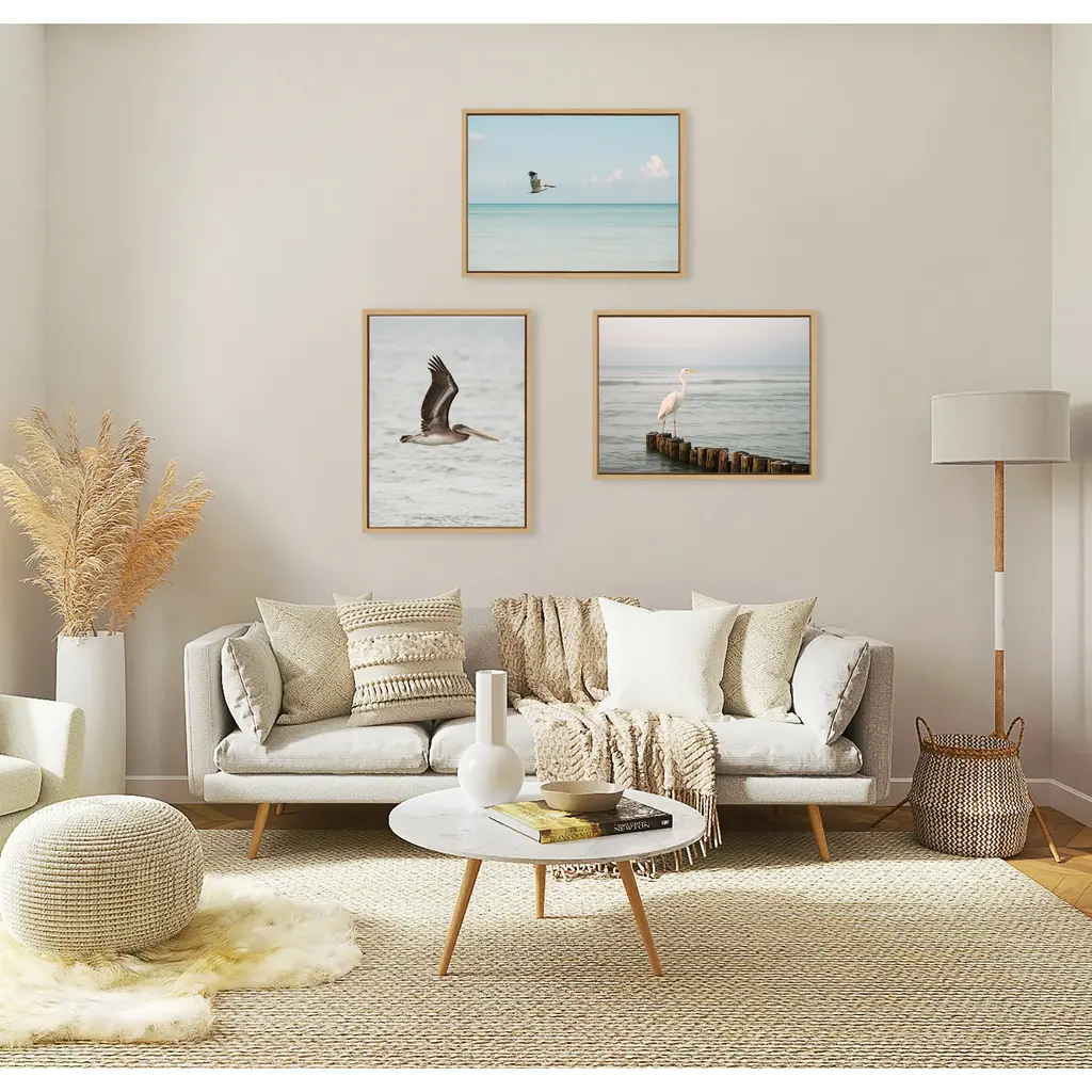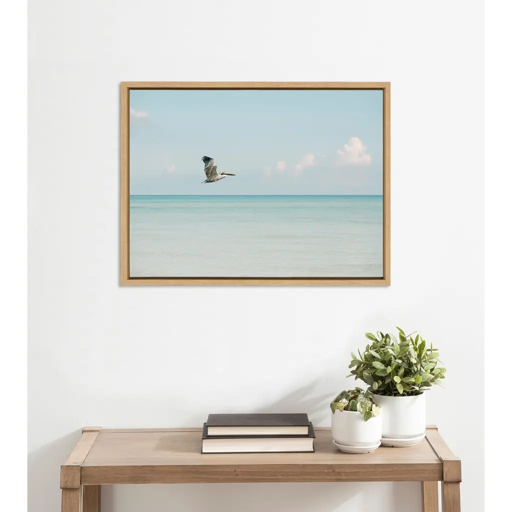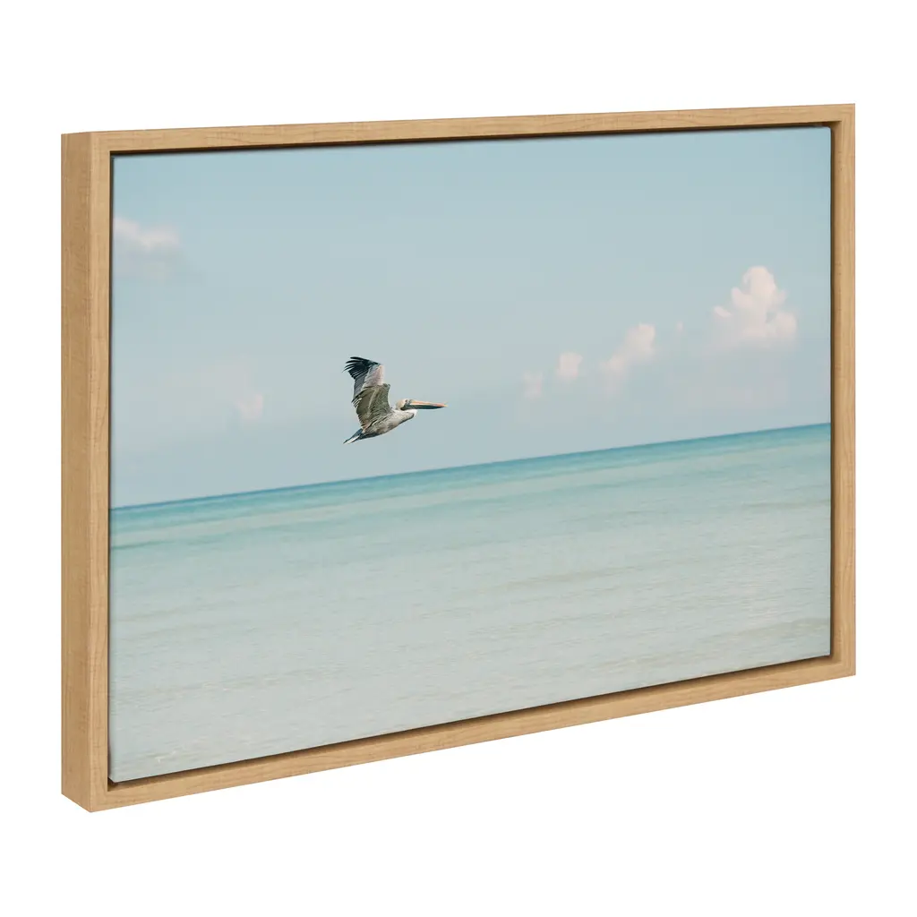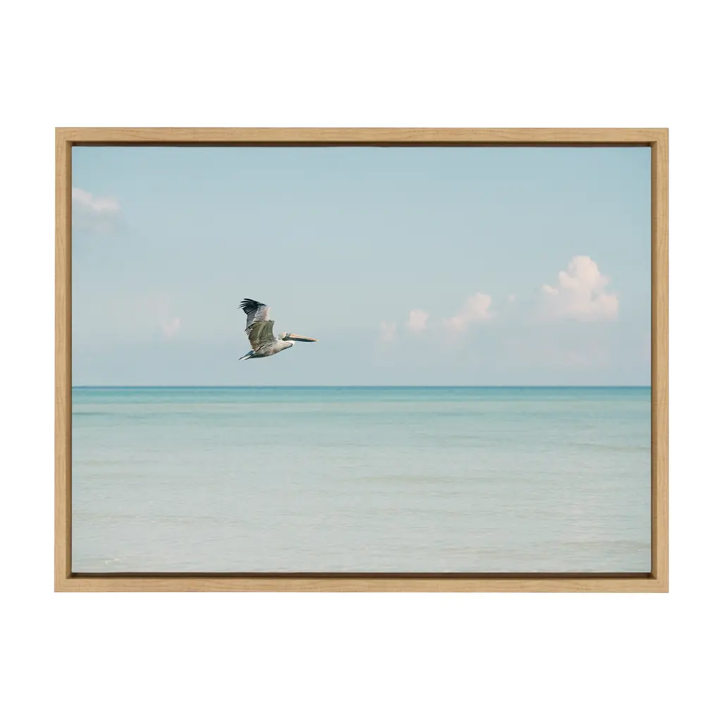 This soft ocean landscape bird wall art captures the serenity of Isla Holbox. With its natural frame and peaceful composition, this piece adds a touch of nature-inspired beauty to your walls. Framed in the USA in Waunakee, Wisconsin, this modern floating canvas art is sure to bring joy to your space. Our design team curates art that will fit perfectly in any room of your home. Showcase this art in your living room, bedroom, home office, kitchen, bathroom, nursery, or anywhere you want to bring a little beauty and charm to your walls. Specializing in home décor, we are continually bringing timeless works of art for the traditional decorator as well as trend-forward pieces for that eclectic art lover. Our high-quality framed canvas art also makes excellent gifts for birthdays, holidays, or housewarming parties. Printed on gallery-wrapped canvas and framed with a simple gallery frame this wall art is easy to display on the wall and will match with any décor style. The outer dimensions are 18 inches by 24 inches by 1.6 inches. Print Name: "Isla Holbox No 7"
