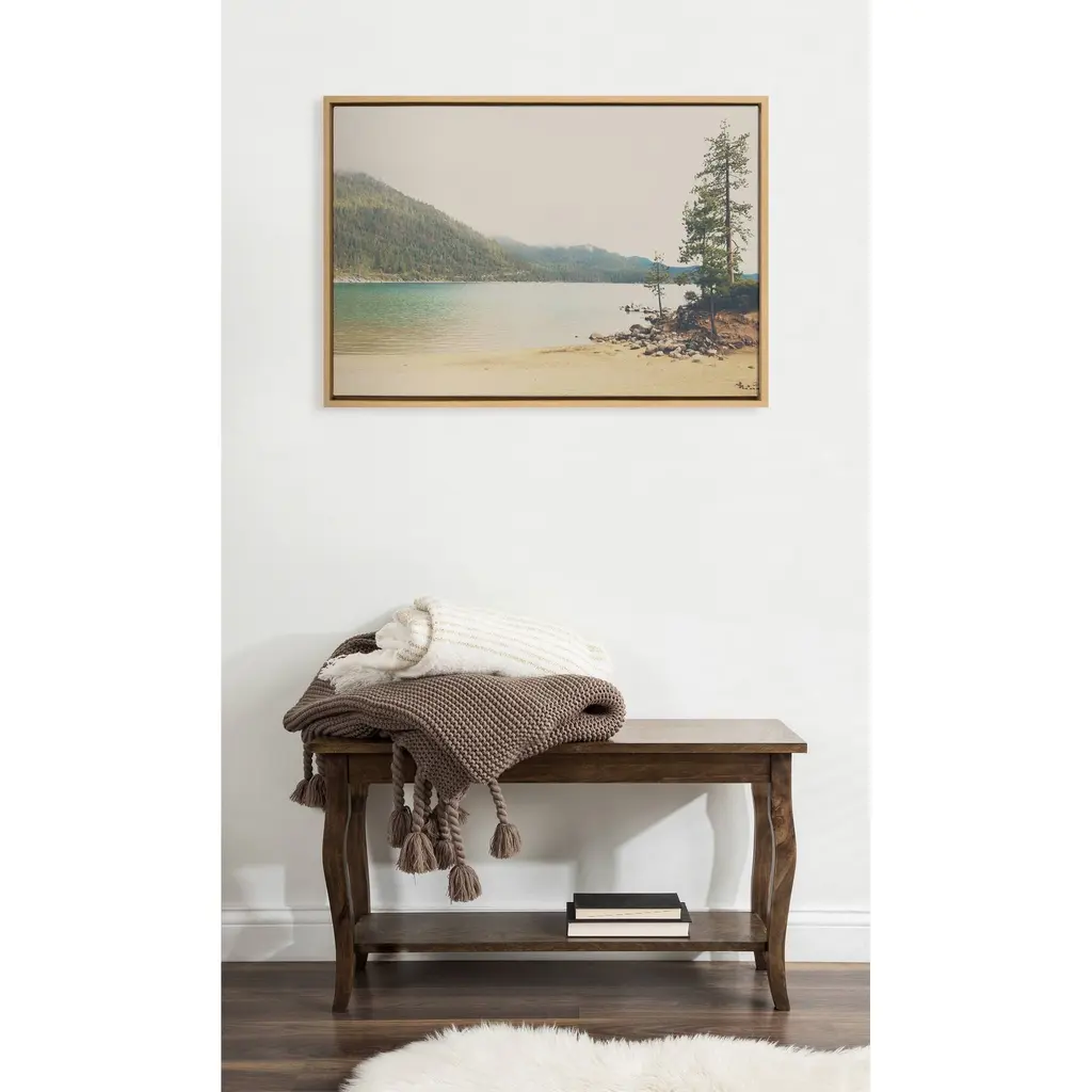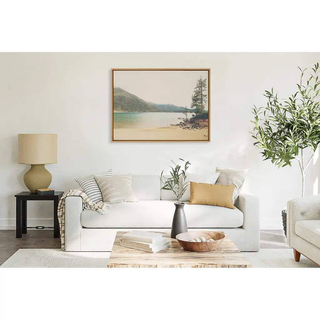 Showcase your love of all the nature Lake Tahoe has to offer with this beautiful art print by Laura Evans. This beautiful landscape image will transport you to a place of swimming, canoeing or just simply relaxing on the shore. Framed in the USA in Waunakee, Wisconsin, this floating canvas art will be a pleasure to look at every day in your living room, bedroom, office, or any room in the home. This art print also makes an excellent gift for birthdays, holidays, or house-warming parties. Printed on gallery-wrapped canvas and framed with a lightweight polystyrene frame, this wall art has two hangers already attached to the MDF back for easy wall display. The outer dimensions are 38 inches by 28 inches by 1.63 inches. Print Name: "Lake Tahoe California Mountain Sand Harbor"