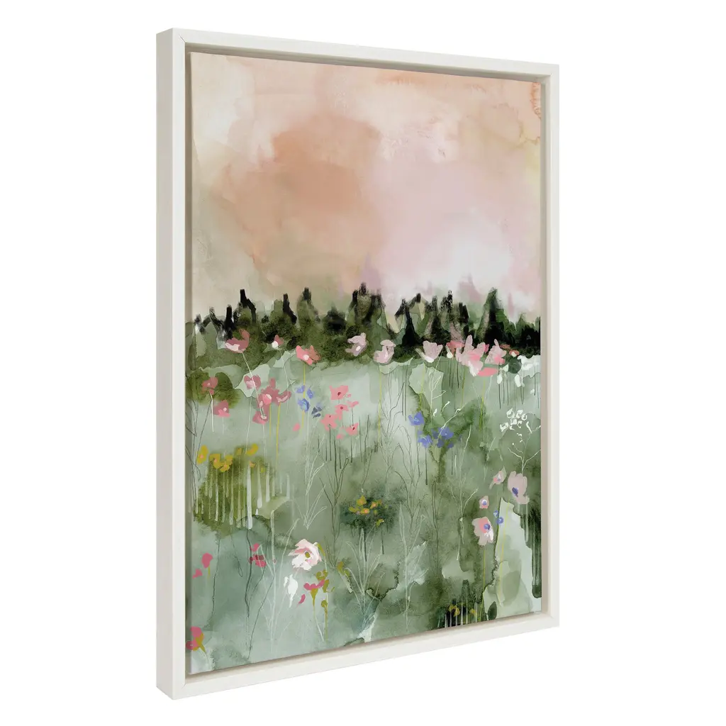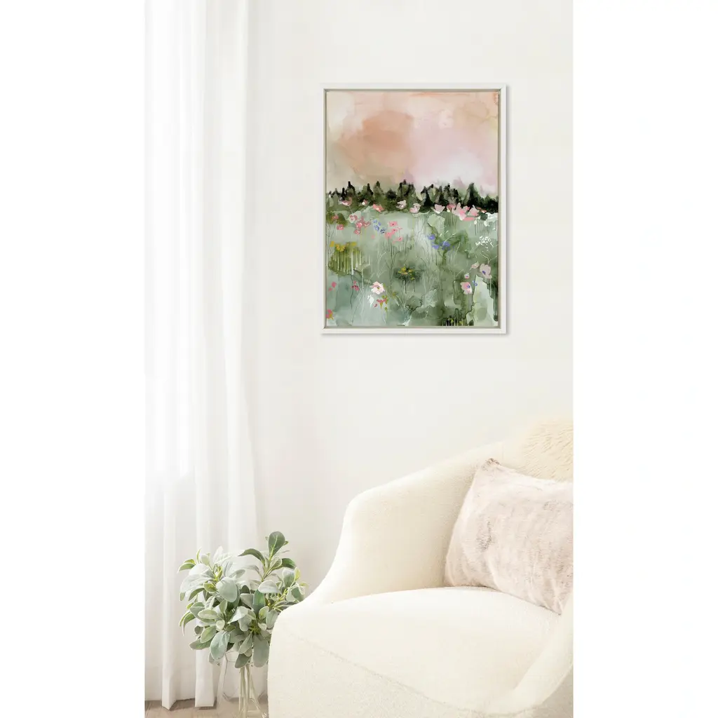 Create a soothing nature display with this watercolor framed canvas art by Annie Quigley. This lovely depiction of a meadow fills your space with soft, thoughtful brushstrokes. Framed in the USA in Waunakee, Wisconsin, this modern floating canvas art is sure to bring joy to your space. Our design team curates art that will fit perfectly in any room of your home. Showcase this art in your living room, bedroom, home office, kitchen, bathroom, nursery, or anywhere you want to bring a little beauty and charm to your walls. Specializing in home décor, we are continually bringing timeless works of art for the traditional decorator as well as trend-forward pieces for that eclectic art lover. Our high-quality framed canvas art also makes excellent gifts for birthdays, holidays, or housewarming parties. Printed on gallery-wrapped canvas and framed with a simple gallery frame this wall art is easy to display on the wall and will match with any décor style. The outer dimensions are 18 inches by 24 inches by 1.6 inches. Print Name: "Landscape 01"