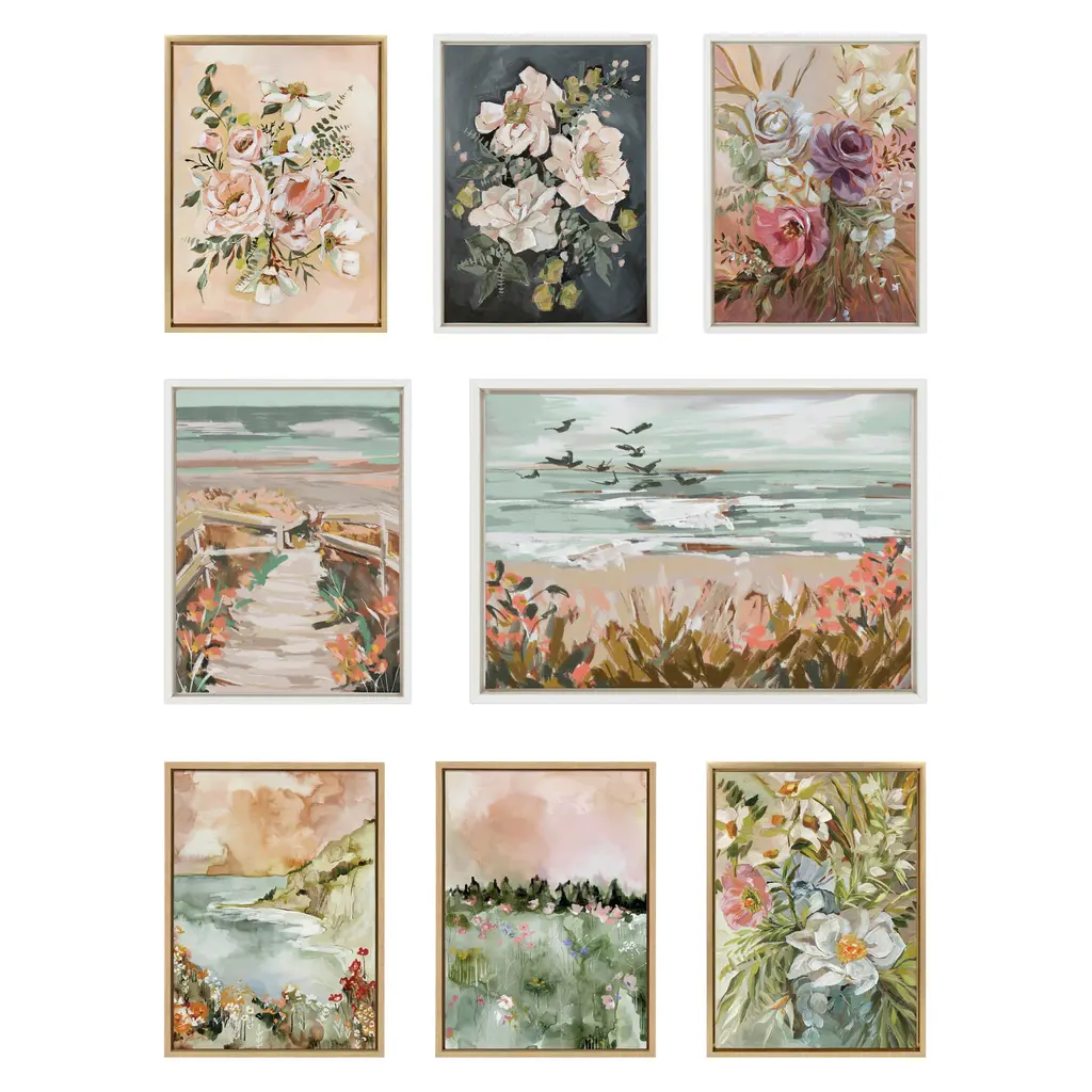 Create a soothing nature display with this watercolor framed canvas art by Annie Quigley. This lovely depiction of a meadow fills your space with soft, thoughtful brushstrokes. Framed in the USA in Waunakee, Wisconsin, this modern floating canvas art is sure to bring joy to your space. Our design team curates art that will fit perfectly in any room of your home. Showcase this art in your living room, bedroom, home office, kitchen, bathroom, nursery, or anywhere you want to bring a little beauty and charm to your walls. Specializing in home décor, we are continually bringing timeless works of art for the traditional decorator as well as trend-forward pieces for that eclectic art lover. Our high-quality framed canvas art also makes excellent gifts for birthdays, holidays, or housewarming parties. Printed on gallery-wrapped canvas and framed with a simple gallery frame this wall art is easy to display on the wall and will match with any décor style. The outer dimensions are 18 inches by 24 inches by 1.6 inches. Print Name: "Landscape 04"