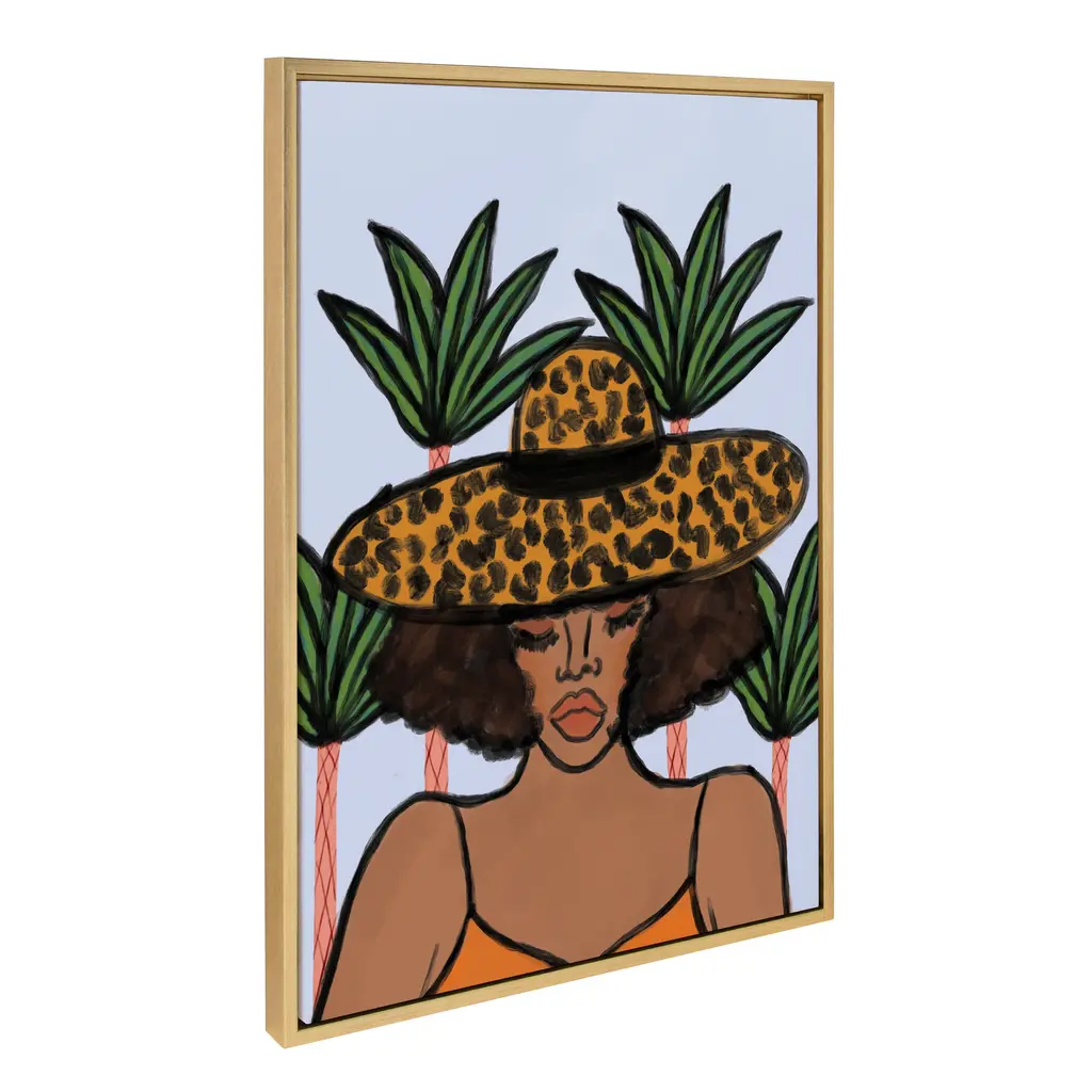 Kate And Laurel Sylvie Leopard Hat Framed Canvas By Kendra Dandy - 23x33 - Plastic - Gold