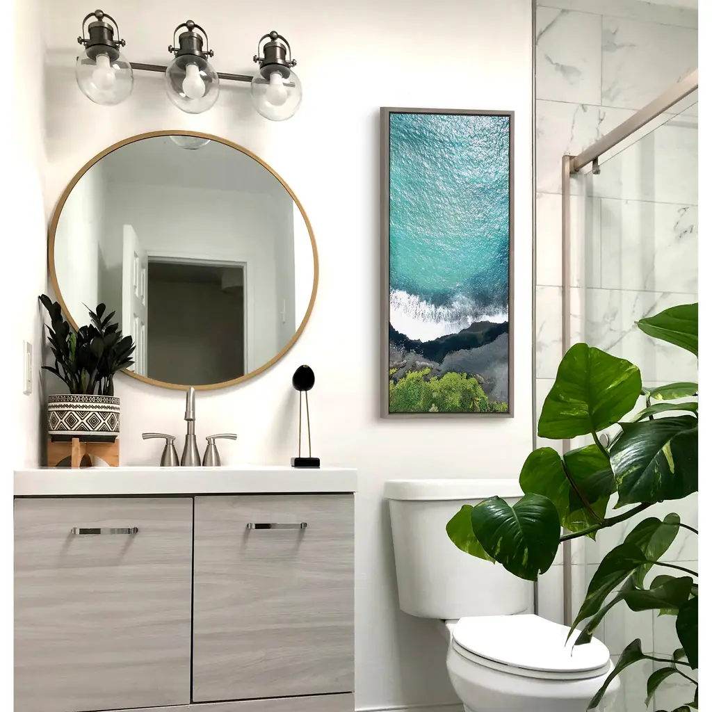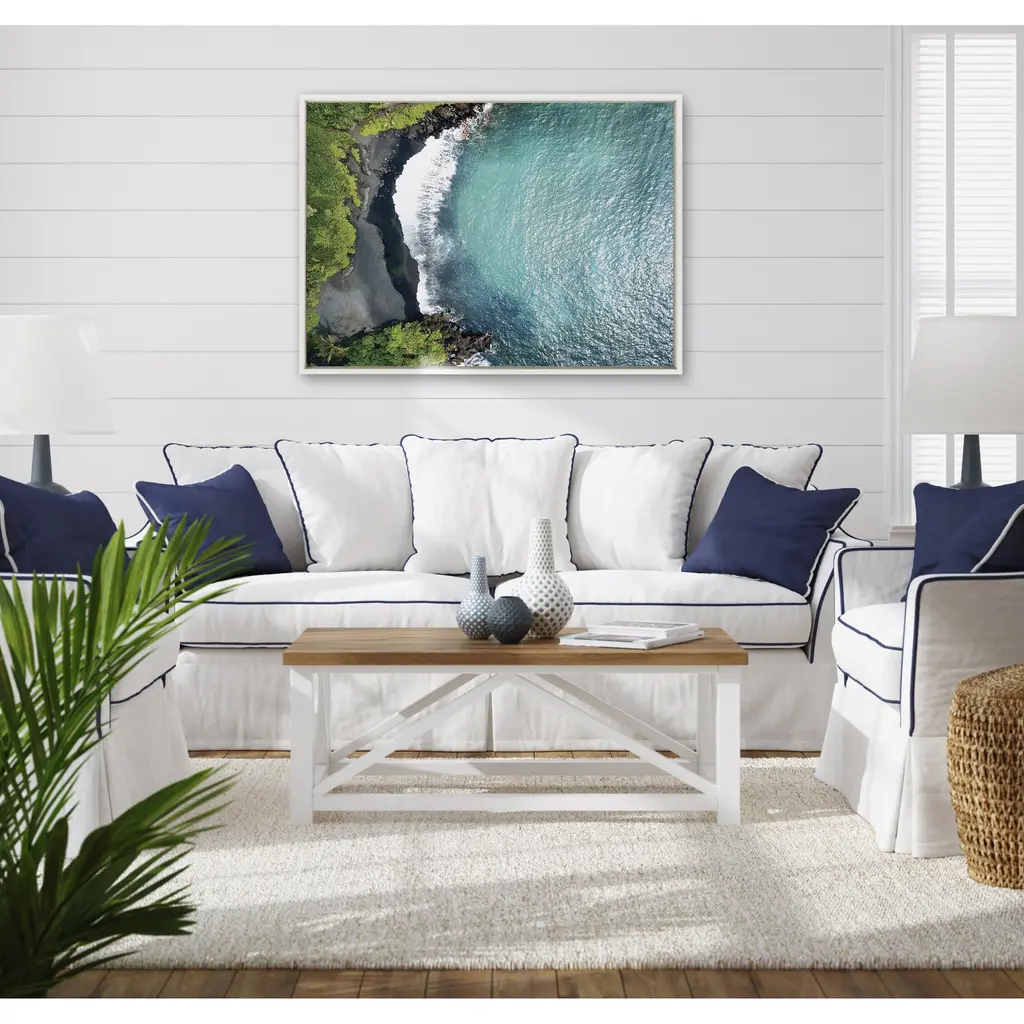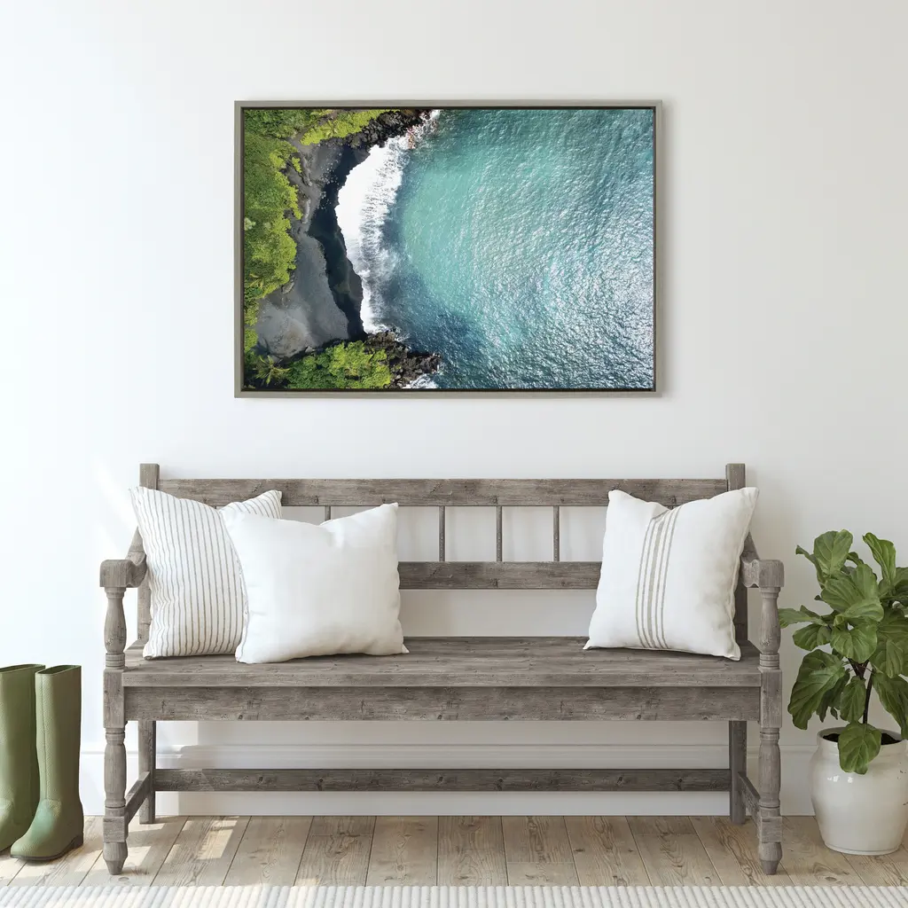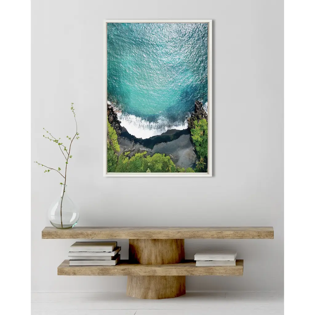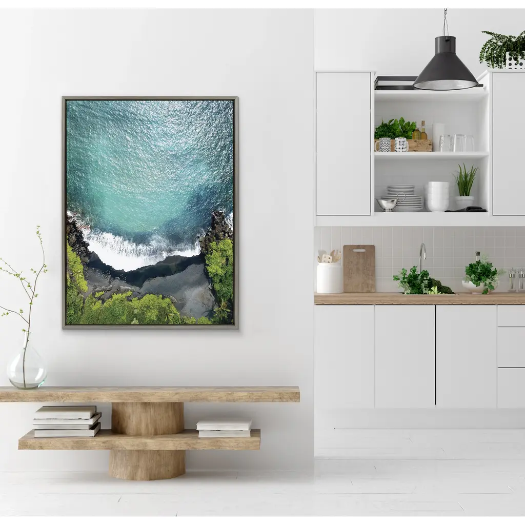 Get lost in this beautiful art of ocean waves by Rachel Dowd. This print brings a pop of tropical, relacing color to any room in your home. Framed in the USA in Waunakee, Wisconsin, this floating canvas art will be a pleasure to look at every day in your living room, bedroom, nursery, or any room in the home. Printed on gallery-wrapped canvas and framed with a lightweight polystyrene frame, this wall art has two hangers already attached to the MDF back for easy wall display.