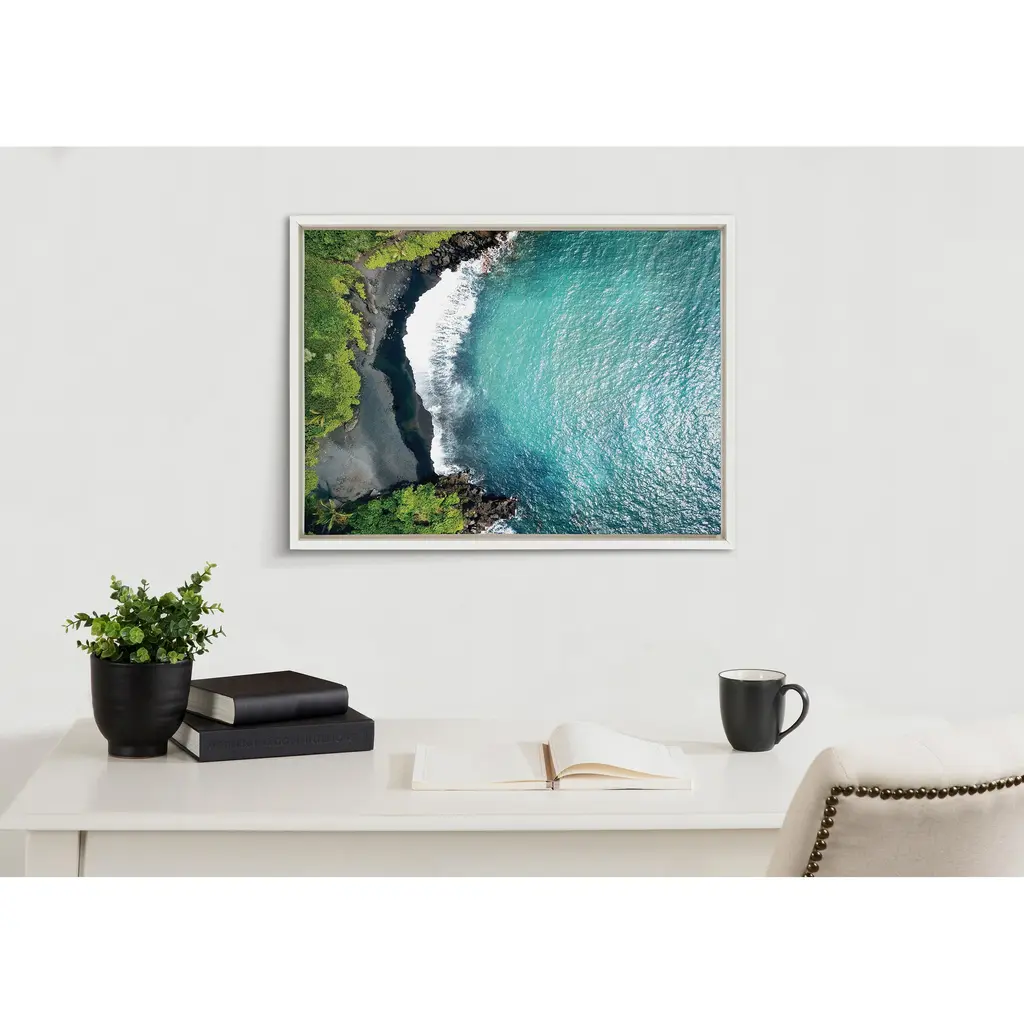 Kate And Laurel Sylvie Maui Black Sand Framed Canvas By Rachel Bolgov - 28x38 - Plastic - Grey