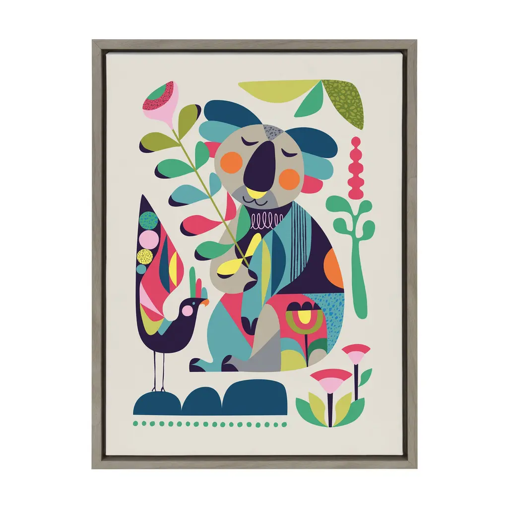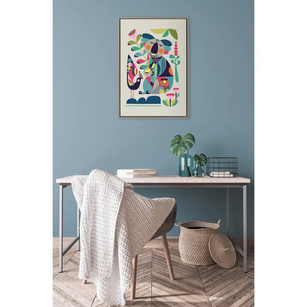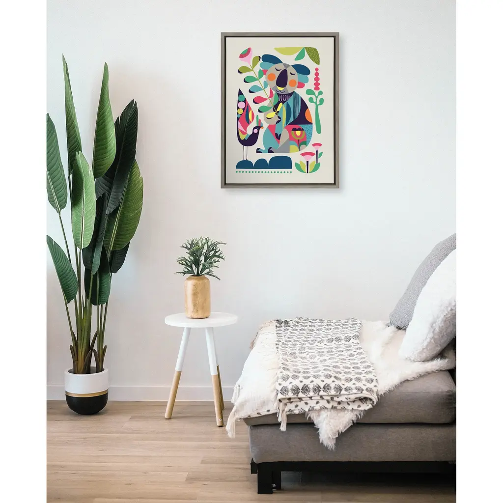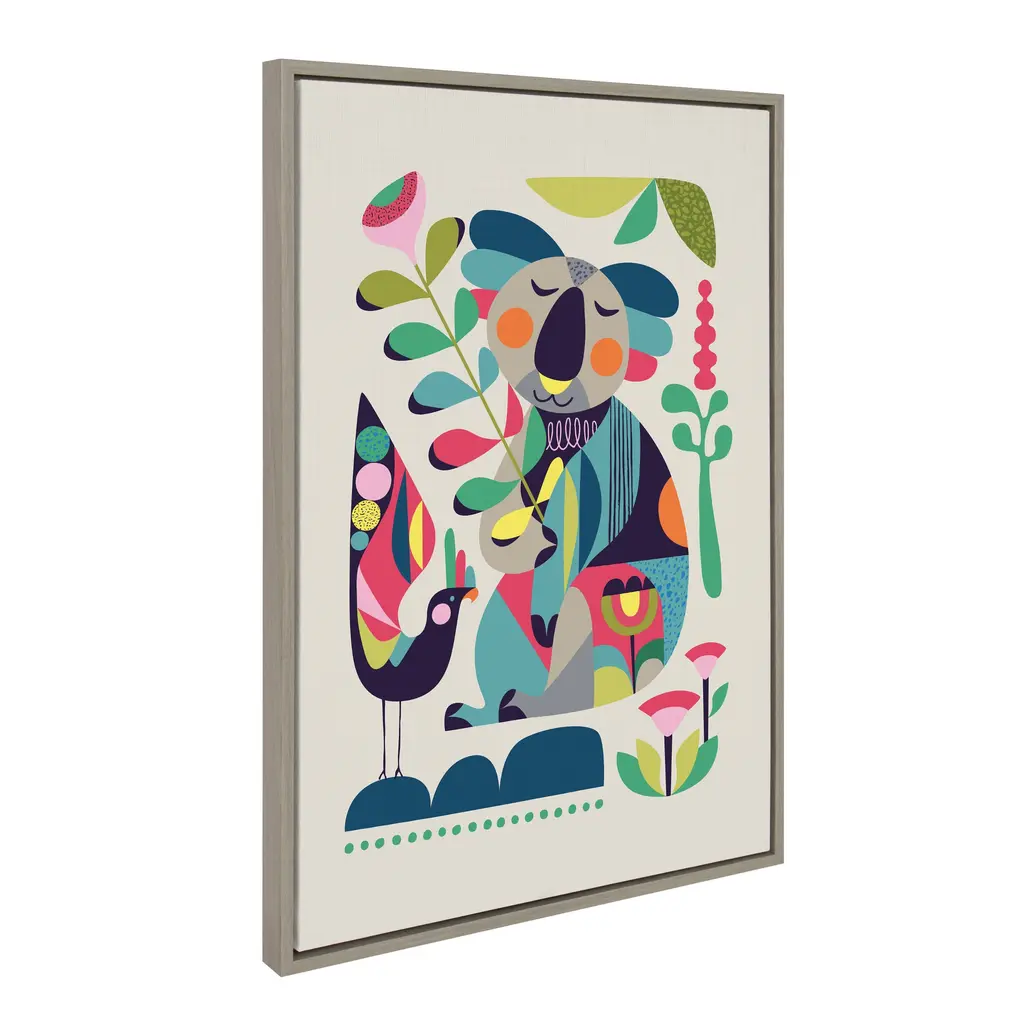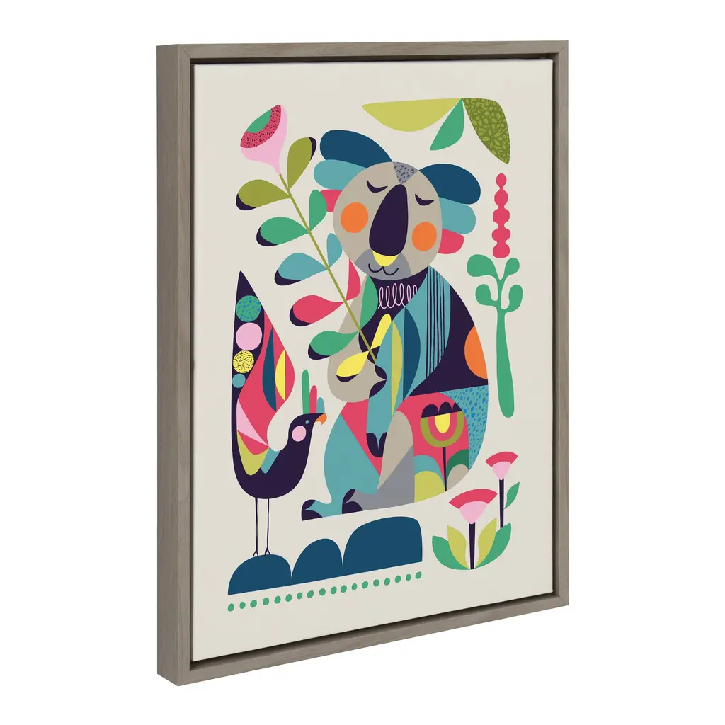 Kate And Laurel Sylvie Mid Century Koala Framed Canvas By Rachel Lee - 18x24 - Plastic - Natural