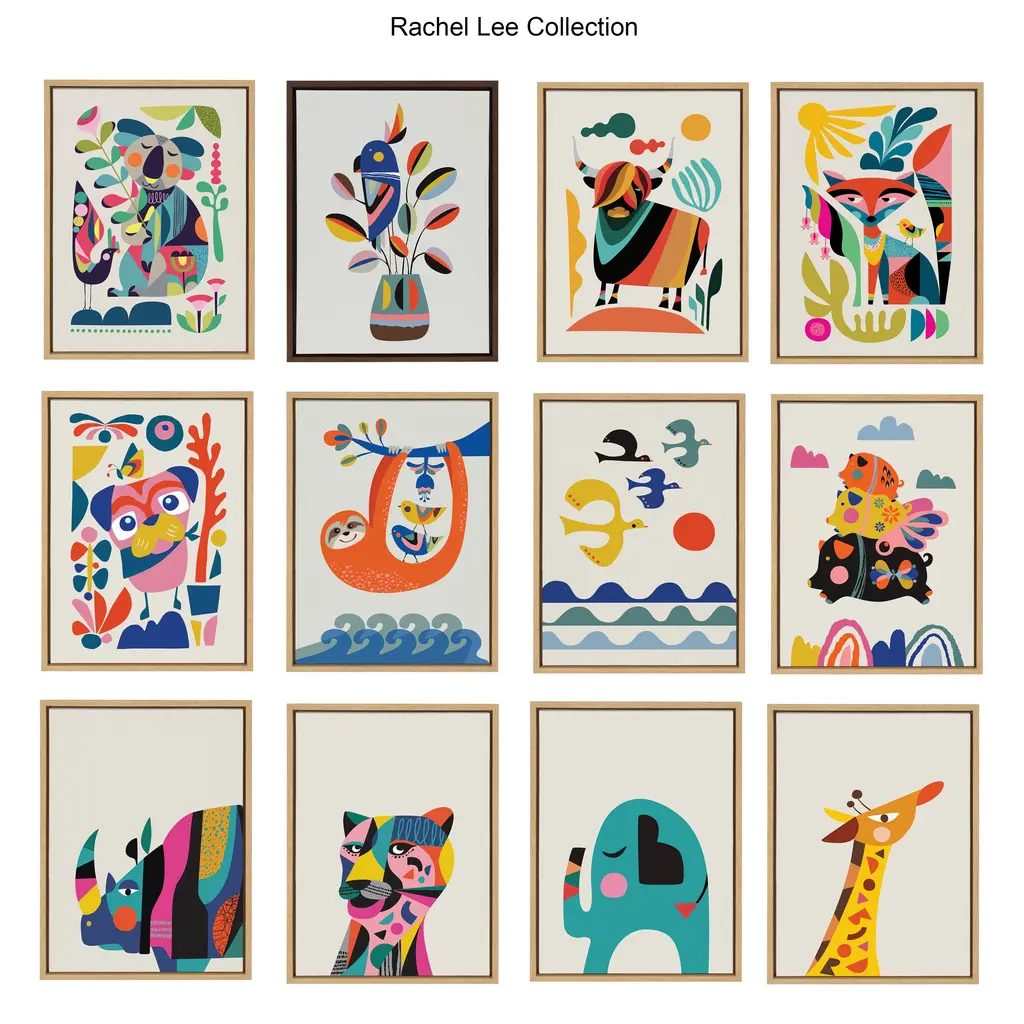 Kate And Laurel Sylvie Mid Century Modern Fox Framed Canvas By Rachel Lee - 23x33 - Plastic - Grey