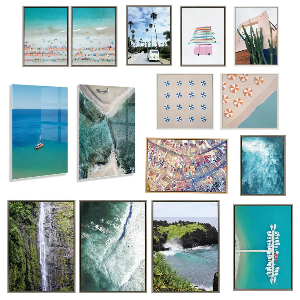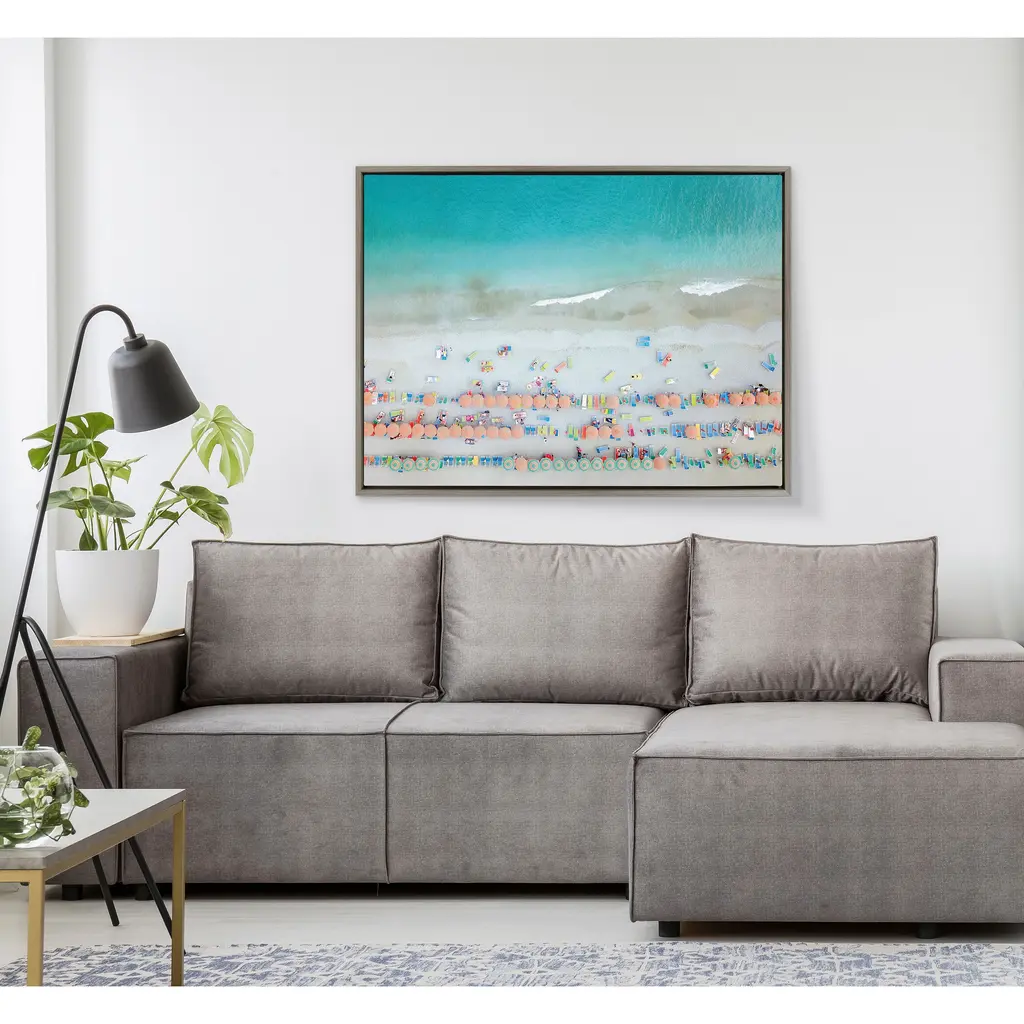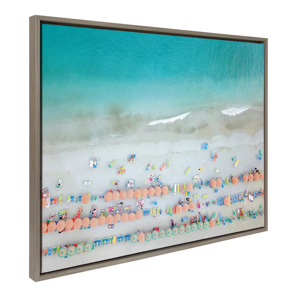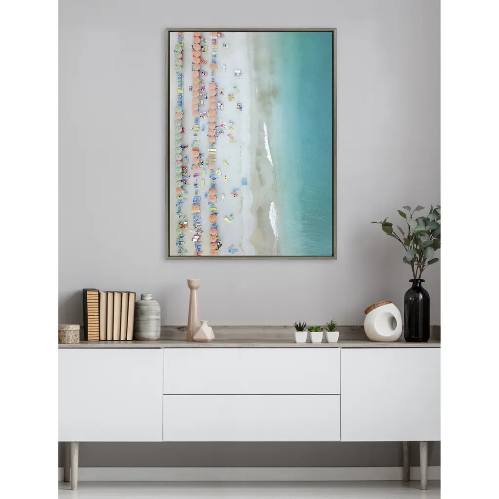 Are you dreaming of those long days at the beach, sand between your toes, hot sun on your skin, sunblock in the air? Well, this print may not take you back to the coast, but it's sure to be the next best thing as an addition to your wall decor. Framed in the USA in Waunakee, Wisconsin, this floating canvas art will be a pleasure to look at every day in your living room, bedroom, nursery, or any room in the home. This art print also makes an excellent gift for birthdays, holidays, or house-warming parties. Printed on gallery-wrapped canvas and framed with a lightweight polystyrene frame, this wall art has two hangers already attached to the MDF back for easy wall display. The outer dimensions are 38 inches by 28 inches by 1.63 inches. Print Name: "Monterosso 6"