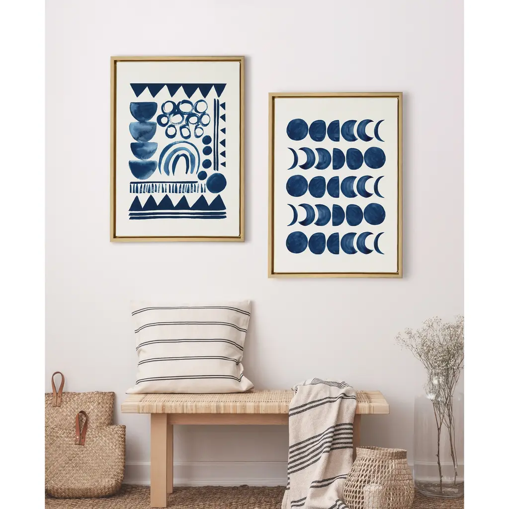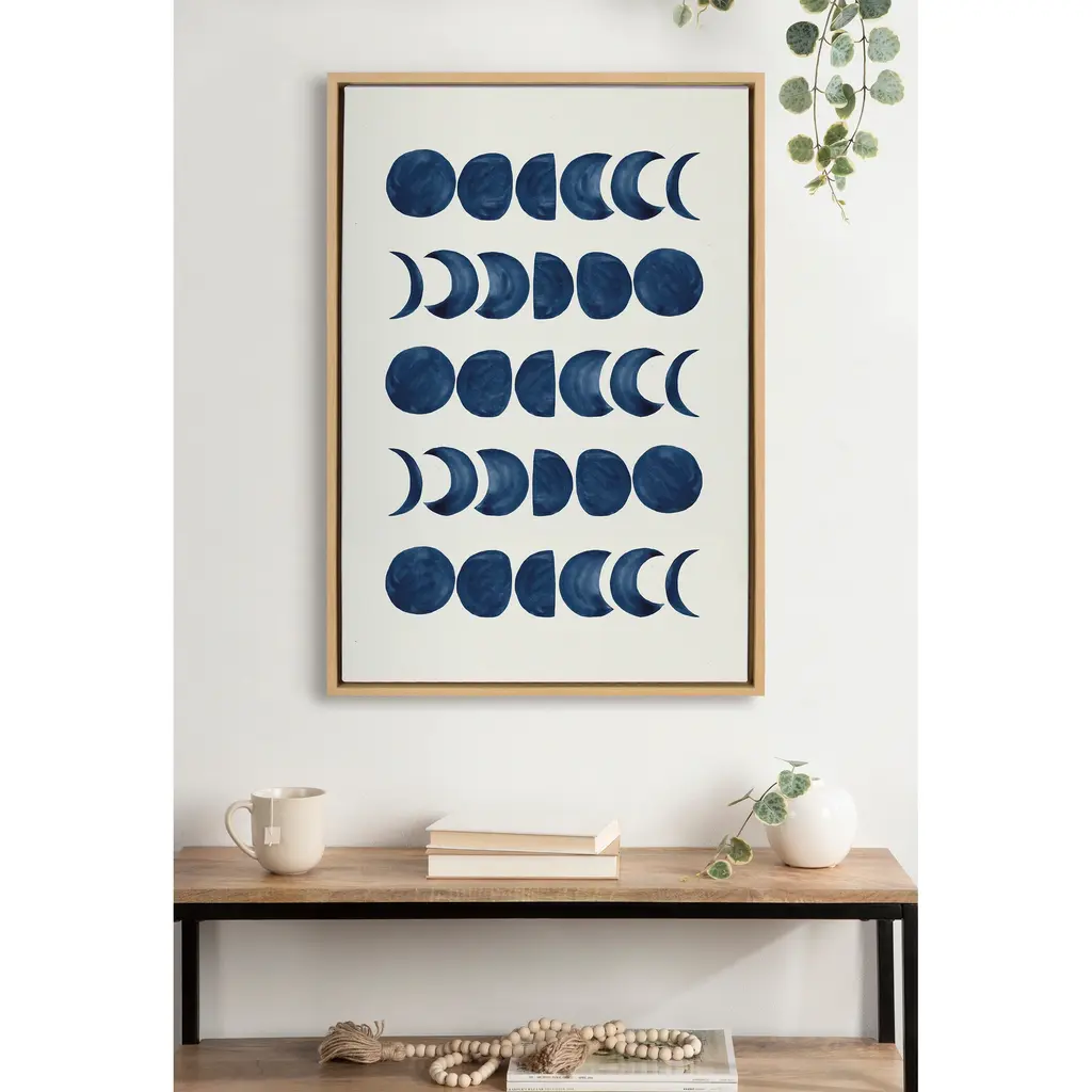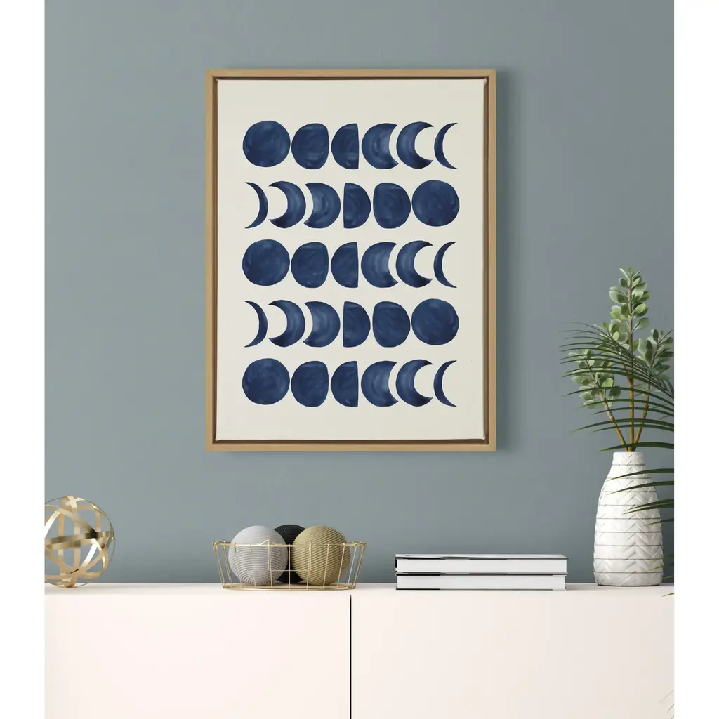 Kate And Laurel Sylvie Moon Phases Framed Canvas By Teju Reval Of Snazzyhues - 28x38 - Natural