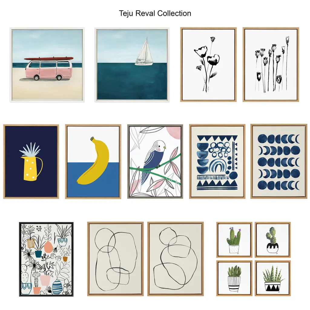 The cycle of the moon represents a refreshing process of cleansing and renewal. This canvas is the perfect piece of wall decor to calm the senses. Displayed in a sleek modern frame, these fun, contemporary designs make for a vibrant statement to any room. Framed in the USA in Waunakee, Wisconsin, this floating canvas art will be a pleasure to look at every day in your living room, bedroom, nursery, or any room in the home. Printed on gallery-wrapped canvas and framed with a lightweight polystyrene frame, this wall art has two hangers already attached to the MDF back for easy wall display. The outer dimensions are 24 inches tall by 18 inches wide by 1.6 inches deep. Print Name: "Moon Phases". About The Artist: Teju Reval is a charcoal artist, illustrator, and surface pattern designer. Her style is elegant and trendy and mostly romanticizes contrasting colors and themes. She grew up in India and has lived in the UK, Hong Kong, and the US. She became a full-time artist in 2013. Teju enjoys working with charcoal, pen and ink, watercolor, and gouache. She takes inspiration from her travels and lives, dreams, and breathes art every day.