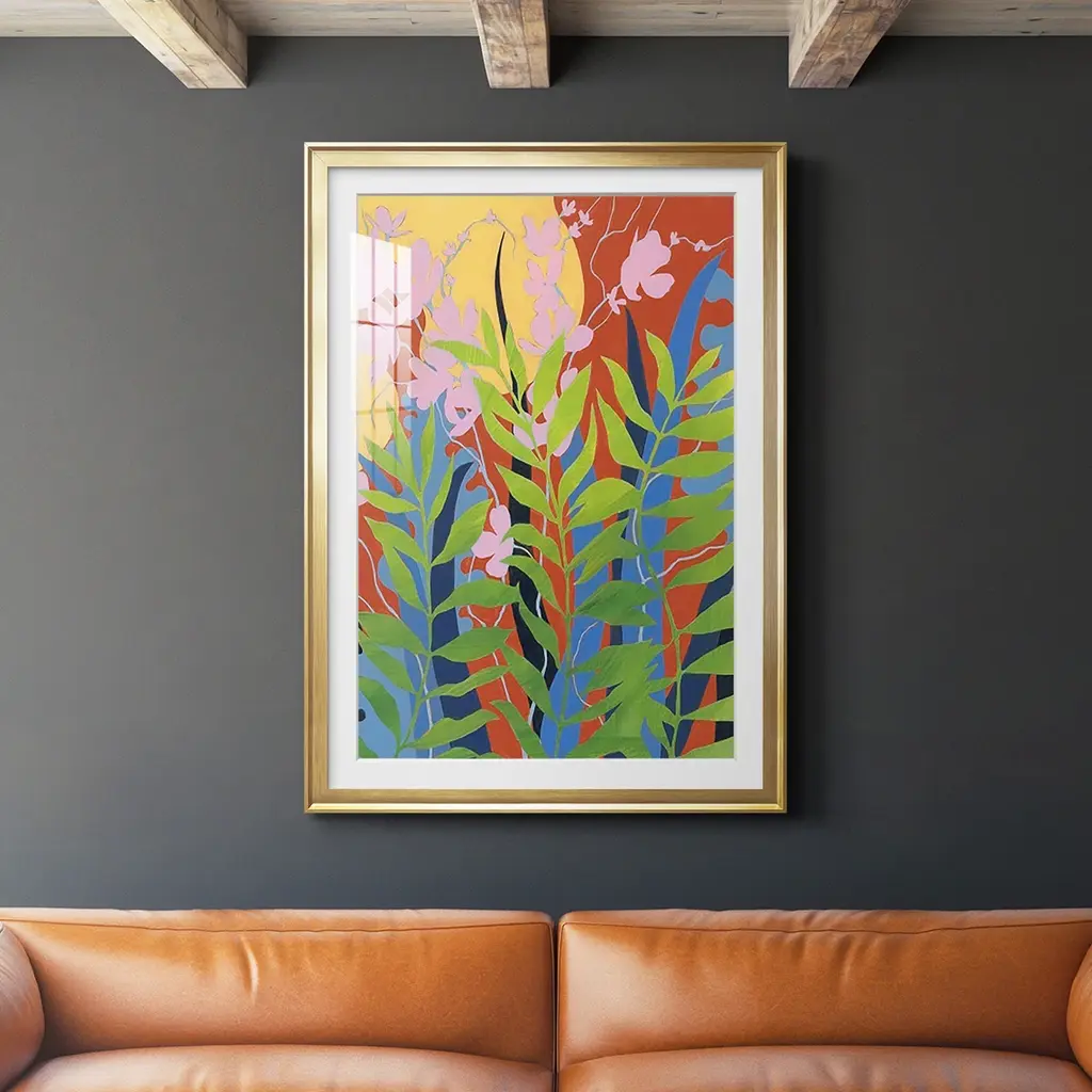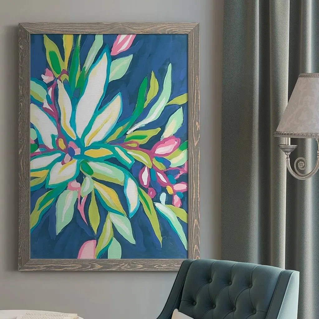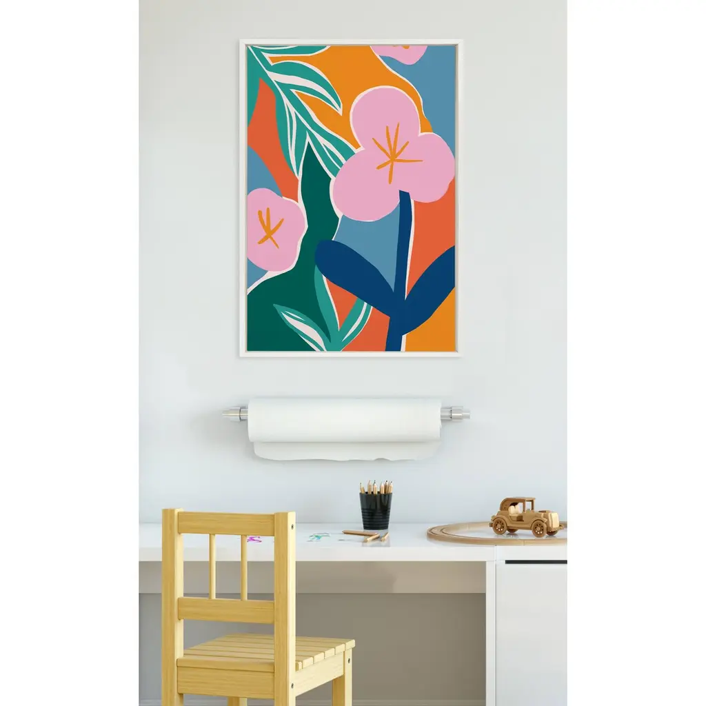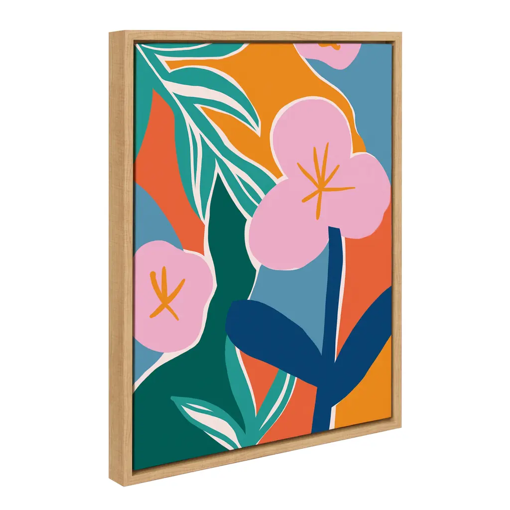 Bring in a touch of floral color to your home with this abstract floral art by Kate Aurelia Holloway. Framed in the USA in Waunakee, Wisconsin, this floating canvas art will be a pleasure to look at every day in your living room, bedroom, nursery, or any room in the home. Printed on gallery-wrapped canvas and framed with a lightweight polystyrene frame, this wall art has two hangers already attached to the MDF back for easy wall display. The outer dimensions are 24 inches tall by 18 inches wide by 1.63 inches deep. Print Name: "Oaxaca Garden"