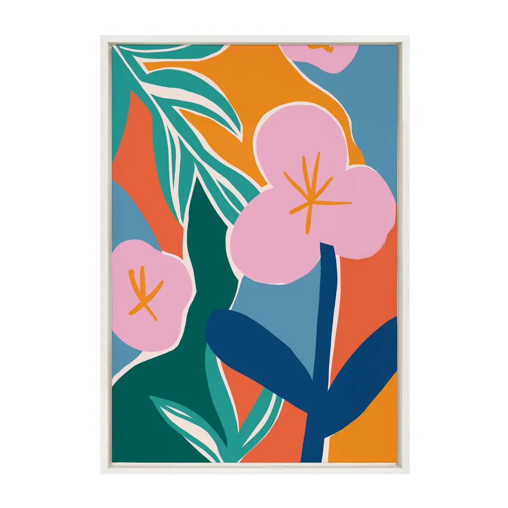 Bring in a touch of floral color to your home with this abstract floral art by Kate Aurelia Holloway. Framed in the USA in Waunakee, Wisconsin, this floating canvas art will be a pleasure to look at every day in your living room, bedroom, nursery, or any room in the home. Printed on gallery-wrapped canvas and framed with a lightweight polystyrene frame, this wall art has two hangers already attached to the MDF back for easy wall display. The outer dimensions are 24 inches tall by 18 inches wide by 1.63 inches deep. Print Name: "Oaxaca Garden"