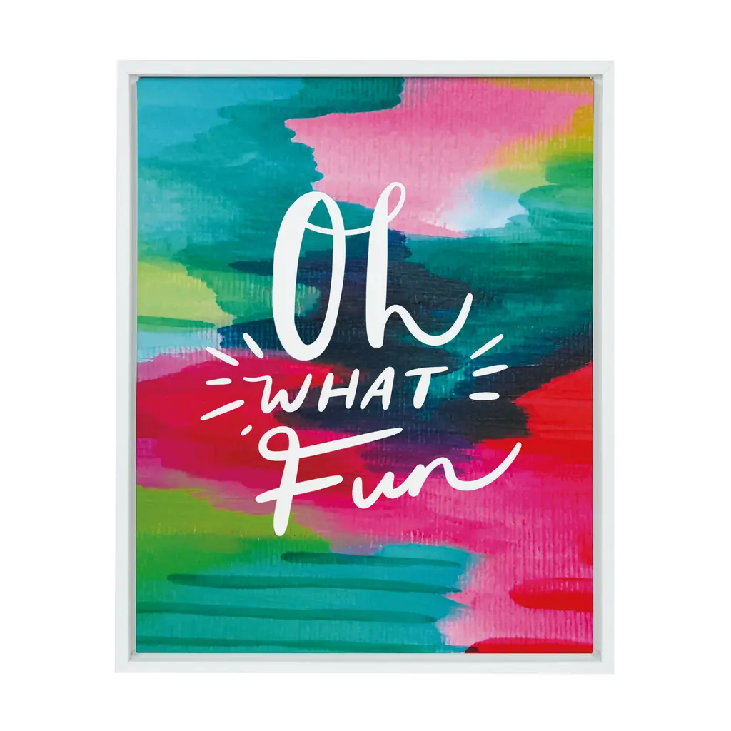 Celebrate the holidays in artistic style with this beautiful, festive wall art from Kate & Laurel. This holiday phrase hearkens back to those cozy winter nights with friends and family celebrating the best time of year. Framed in a sleek modern frame, this fun, contemporary design is the perfect art piece to add to your home decor collection. Printed and framed in the USA in Waunakee, Wisconsin, this framed art will be a pleasure to look at every day in your living room, bedroom, nursery, or any room in the home. This colorful wall art has two hangers already attached for easy wall display. The outer dimensions are 24 inches tall by 18 inches wide by 1.6 inches deep. Print Name: "Oh What Fun". About the Artist: Artist, designer, and social media influencer, Jessi Raulet, has become well-oknown for her hand-painted, colorful and bold designs. With an ability to craft vibrantly optimistic color palettes, Jessi's work is packed with good vibes. The American born, Paris-based artist has an engaged social media following of 30k+ and successful collaborations with leading brands including: Pottery Barn Teen, Sally Hansen, Crayola, Blurb Books, and Fab Fit Fun. Jessi launded EttaVee in 2014, a lfestyle brand that expresses optimism and joy through color.