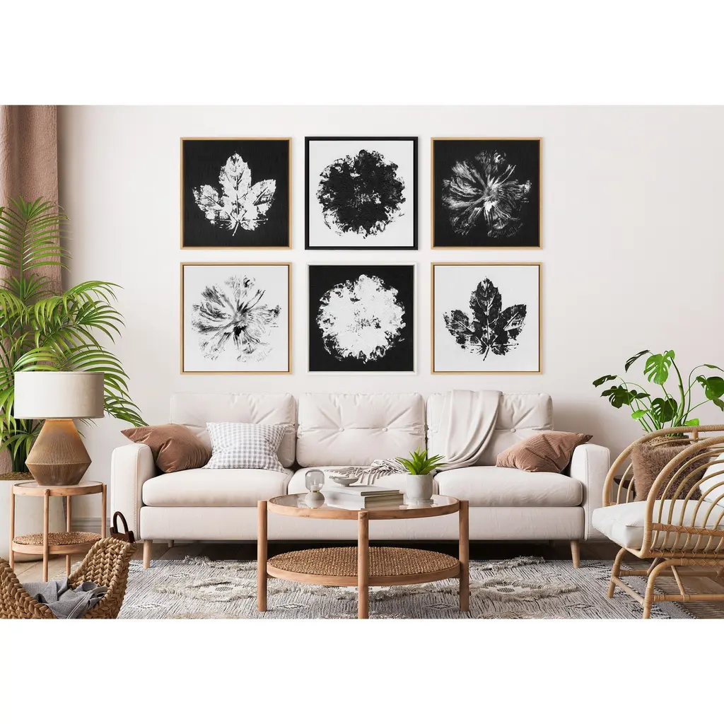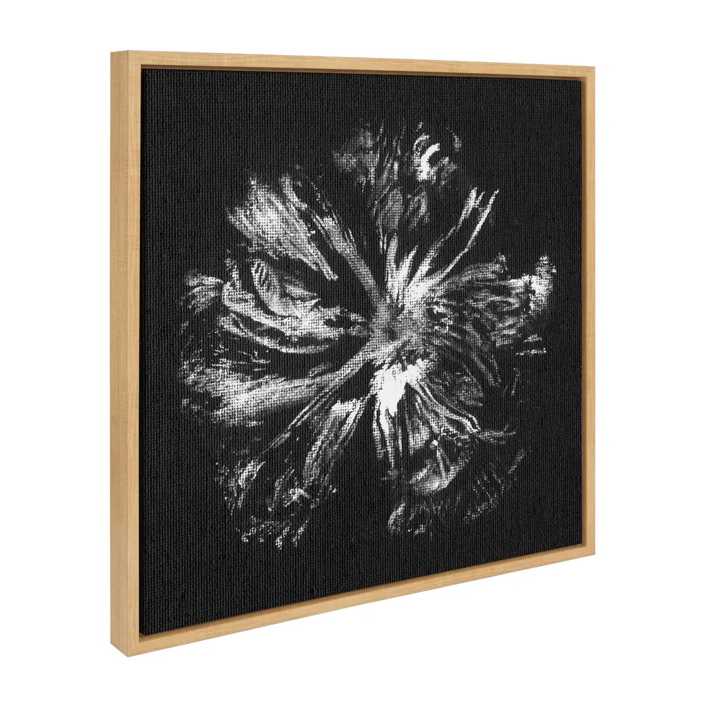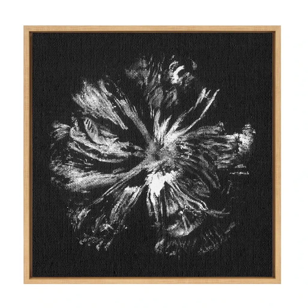 This framed canvas wall art by Mentoring Positives showcases an inverted abstract flower design in black and white, adding a touch of creativity and intrigue to your wall decor. The natural frame complements the unique and artistic imagery, making it a captivating piece that sparks conversation. Framed in the USA in Waunakee, Wisconsin, this modern floating canvas art is sure to bring joy to your space. Our design team curates art that will fit perfectly in any room of your home. Showcase this art in your living room, bedroom, home office, kitchen, bathroom, nursery, or anywhere you want to bring a little beauty and charm to your walls. Specializing in home décor, we are continually bringing timeless works of art for the traditional decorator as well as trend-forward pieces for that eclectic art lover. Our high-quality framed canvas art also makes excellent gifts for birthdays, holidays, or housewarming parties. Printed on gallery-wrapped canvas and framed with a simple gallery frame this wall art is easy to display on the wall and will match with any décor style. The outer dimensions are 22 inches by 22 inches by 1.6 inches. Print Name: "Peony Peacock Invert BW"
