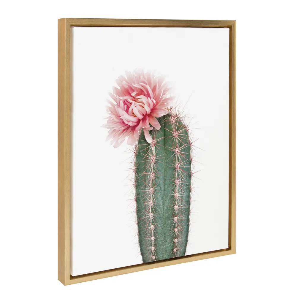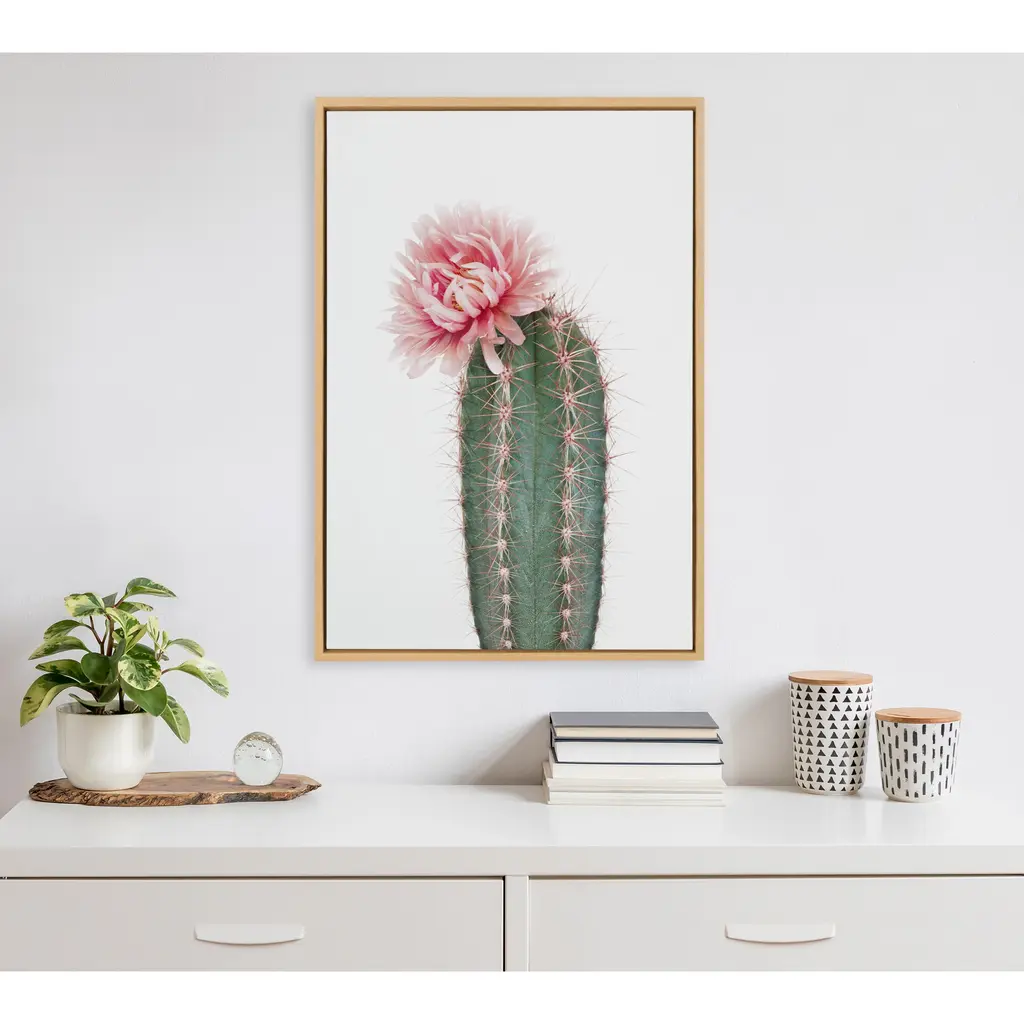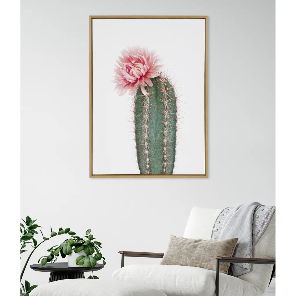 Kate And Laurel Sylvie Pink Cactus Flower Framed Canvas Wall Art - 18x24 - Plastic - Natural