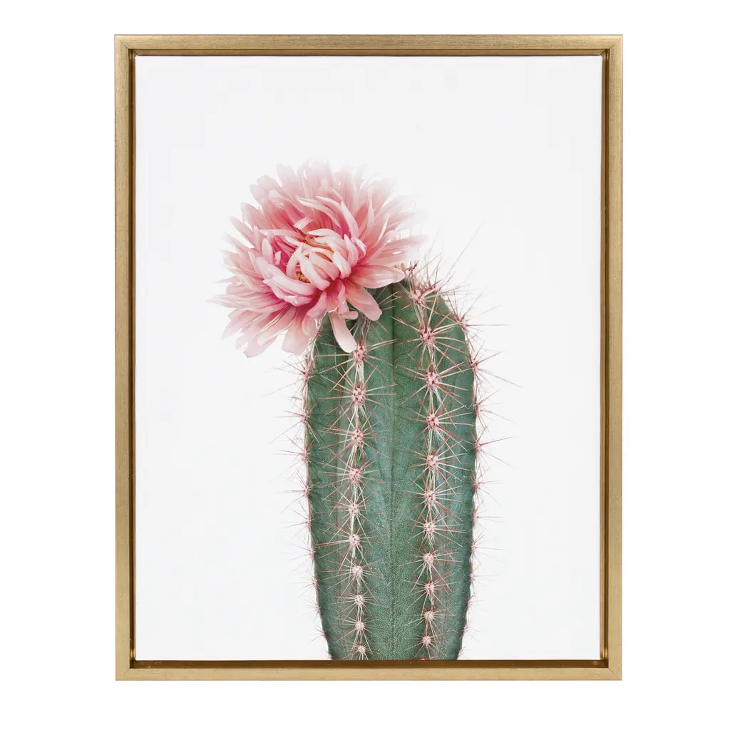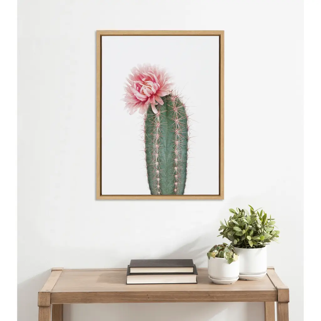 Kate And Laurel Sylvie Pink Cactus Flower Framed Canvas Wall Art - 23x33 - Plastic - Yellow