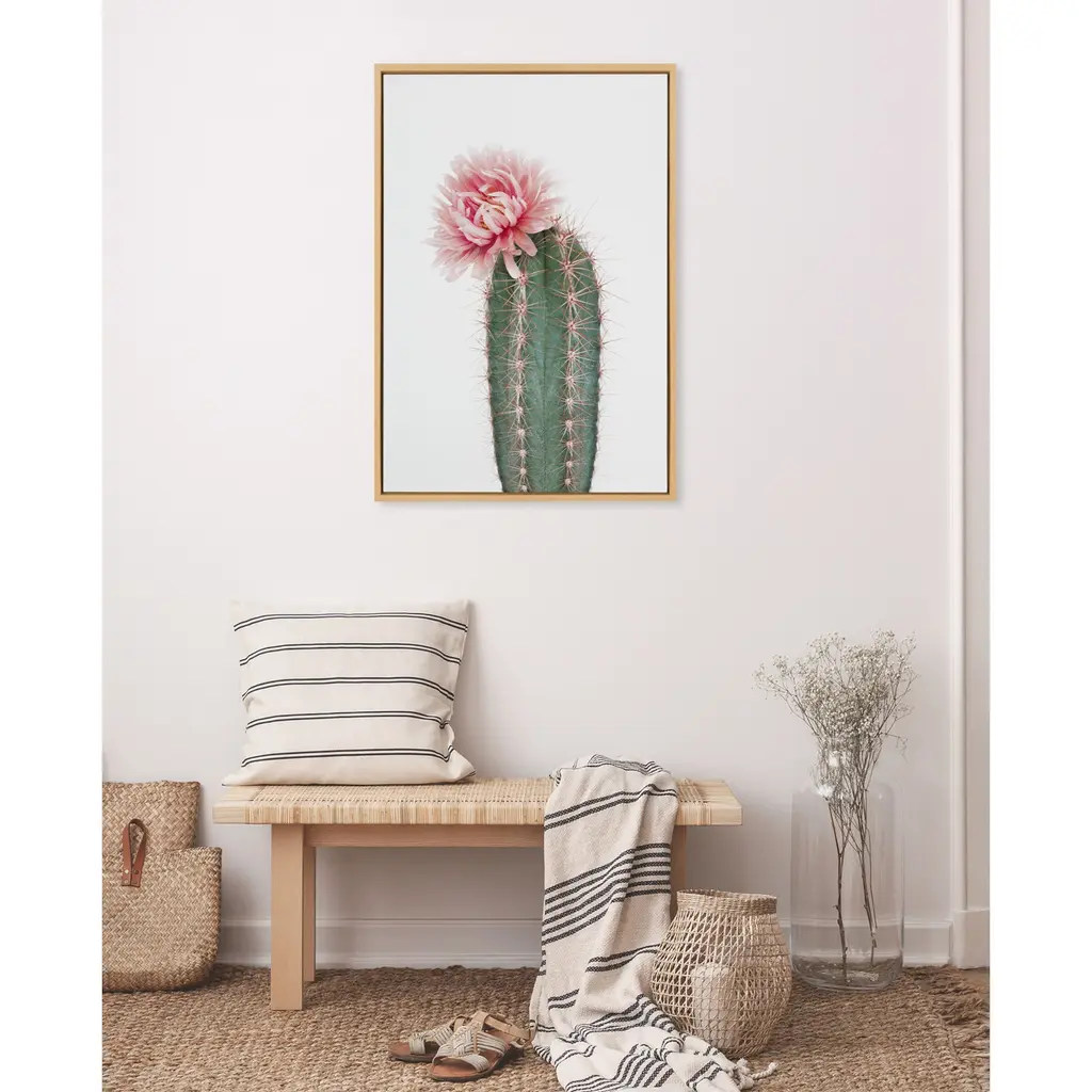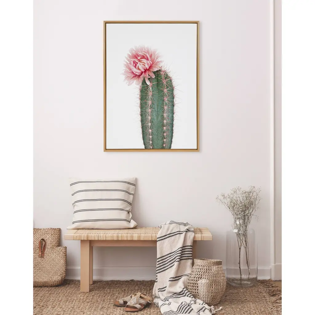 Kate And Laurel Sylvie Pink Cactus Flower Framed Canvas Wall Art - 28x38 - Plastic - Gold