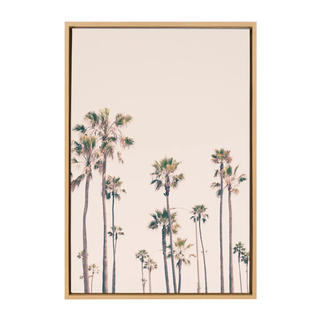 Tropical beach vibes meet a pastel color palette with this print by artist Caroline Mint. in the USA in Waunakee, Wisconsin, this floating canvas art will be a pleasure to look at every day in your living room, bedroom, nursery, or any room in the home. Printed on gallery-wrapped canvas and framed with a lightweight polystyrene frame, this wall art has two hangers already attached to the MDF back for easy wall display. The outer dimensions are 24 inches tall by 18 inches wide by 1.63 inches deep. Print Name: "Pink Palm Tree Paradise"