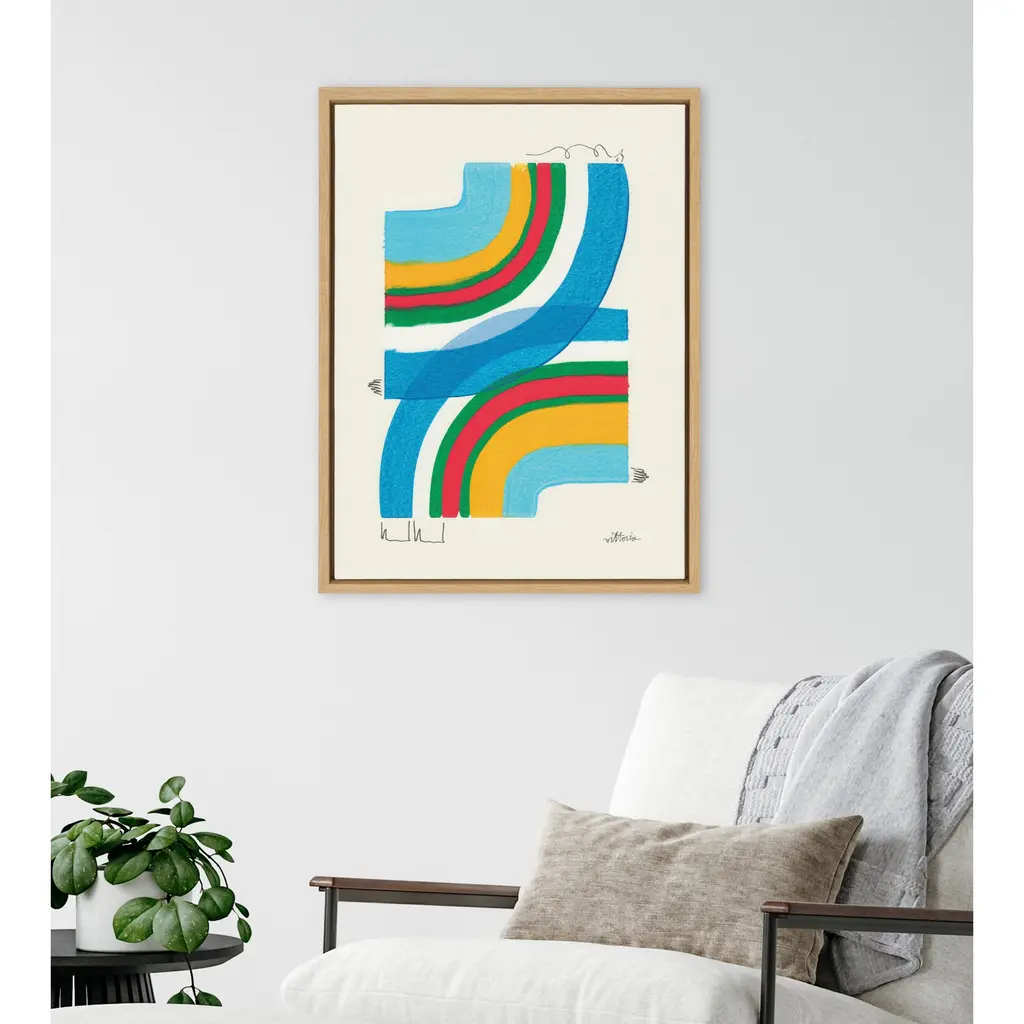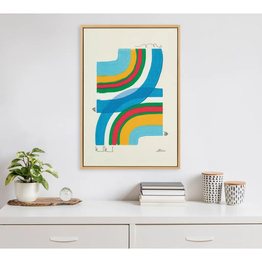 Introduce a delightful addition of color and vibrance into your home with this lovely piece by Amber Vittoria. This geometric marvel is the perfect artwork to bring color and shapes to your barren walls. Framed in the USA in Waunakee, Wisconsin, this modern floating canvas art is sure to bring joy to your space. Our design team curates art that will fit perfectly in any room of your home. Showcase this art in your living room, bedroom, home office, kitchen, bathroom, nursery, or anywhere you want to bring a little beauty and charm to your walls. Specializing in home décor, we are continually bringing timeless works of art for the traditional decorator as well as trend-forward pieces for that eclectic art lover. Our high-quality framed canvas art also makes excellent gifts for birthdays, holidays, or housewarming parties. Printed on gallery-wrapped canvas and framed with a simple gallery frame this wall art is easy to display on the wall and will match with any décor style. The outer dimensions are 18 inches by 24 inches by 1.6 inches. Print Name: "A Plan For Myself"