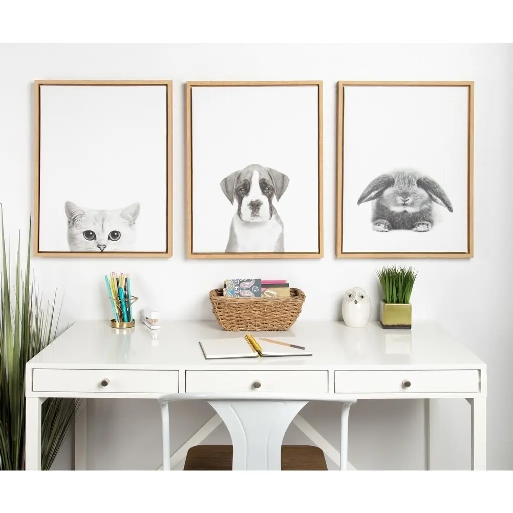 Celebrate your love of animals with this canvas art reproduction by Simon Te Tai. Featuring a lone, crouched rabbit, this striking art print brings the beauty of nature indoors. Ideal for your home or office cubicle, this ready-to-hang, contemporary print with its elegant brown frame gives your room dimension.